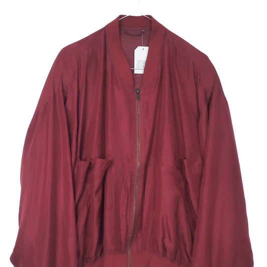 VIN-OUTW-34606 Vintage μπορντό μεταξωτό bomber jacket S-M