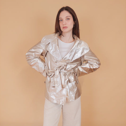 VIN-OUTW-34199 Vintage καμπαρντίνα κοντή μεταλλιζέ S