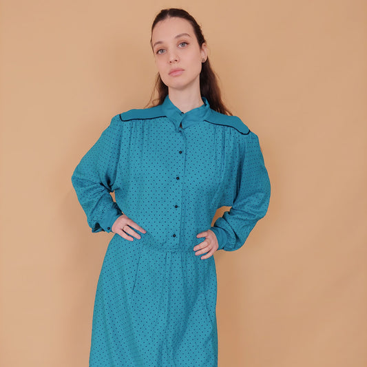 VIN-DR-34569 Vintage φόρεμα πετρόλ Betty Barclay L-XL