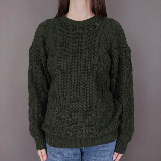 VIN-KNIT-33557 Vintage πλεκτή μάλλινη μπλούζα irish style M