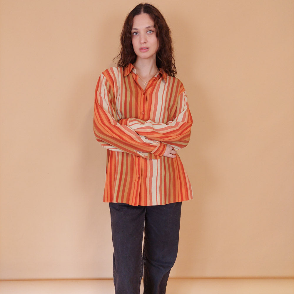 VIN-BLO-32164 Vintage πουκάμισο ριγέ L-XL