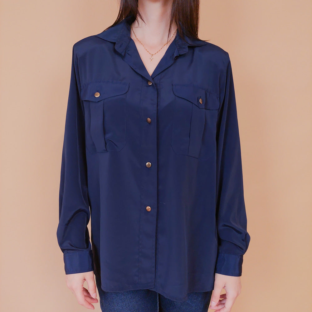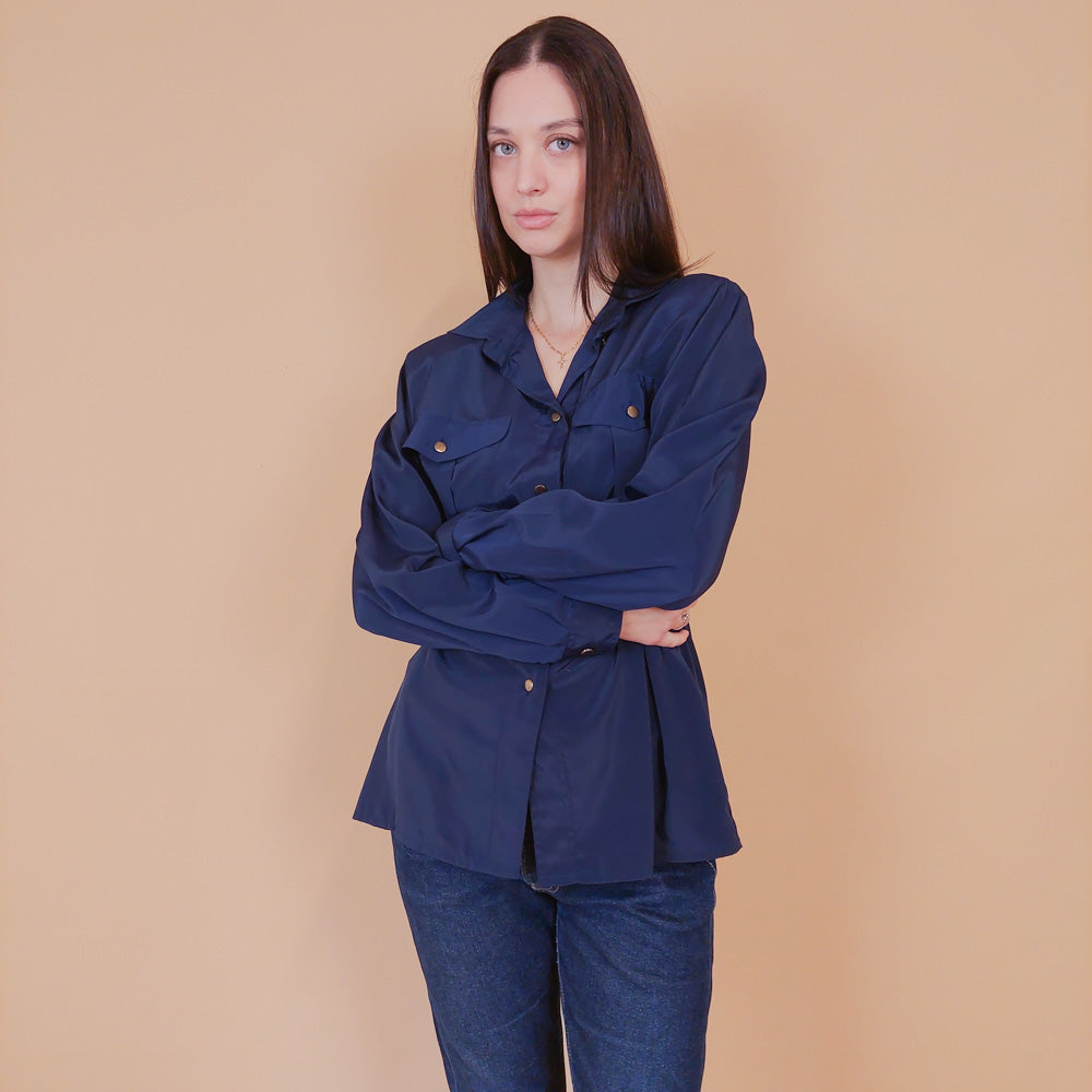 VIN-BLO-32606 Vintage πουκάμισο μπλε M-L