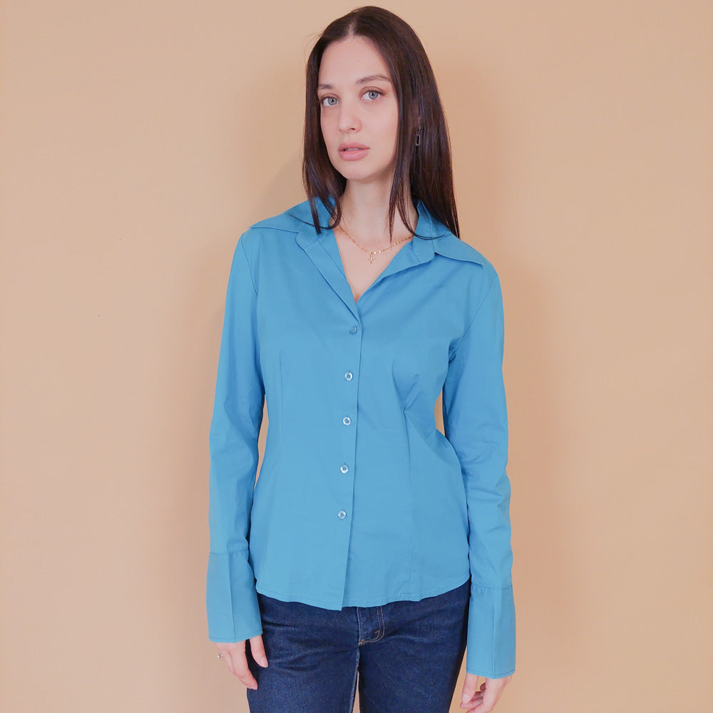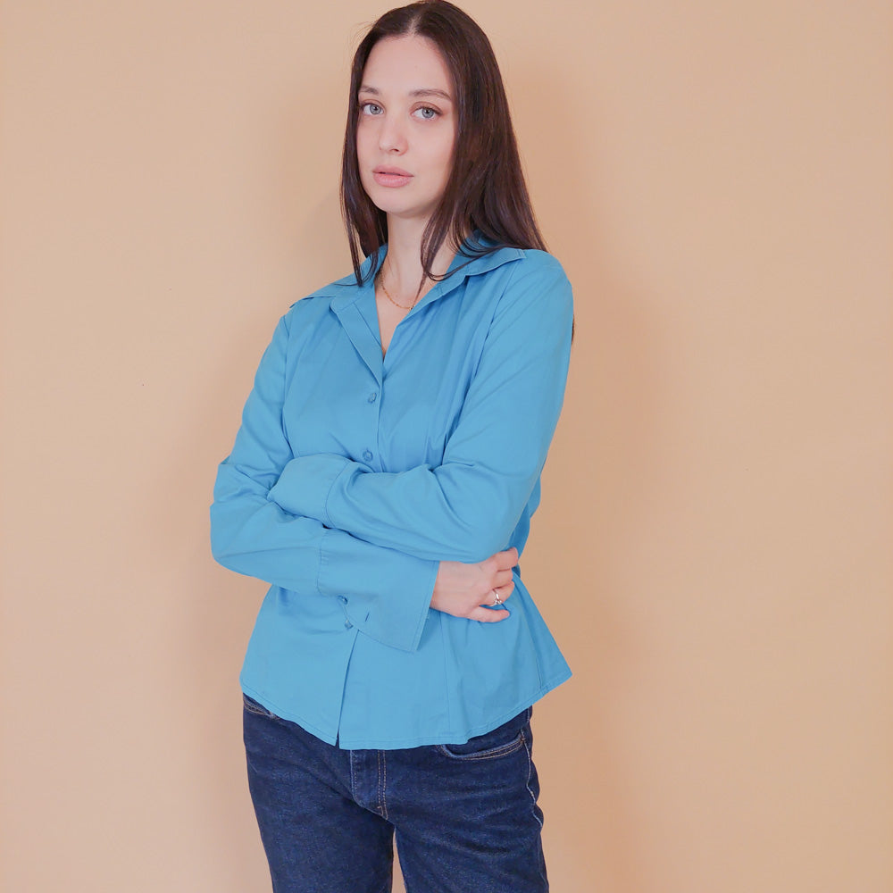 VIN-BLO-32607 Vintage πουκάμισο Y2K σιέλ S-Μ