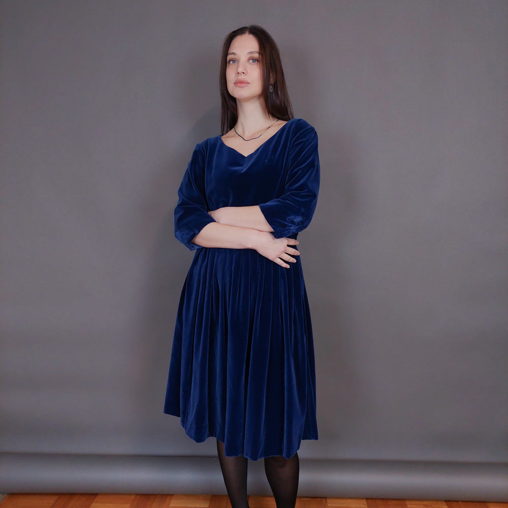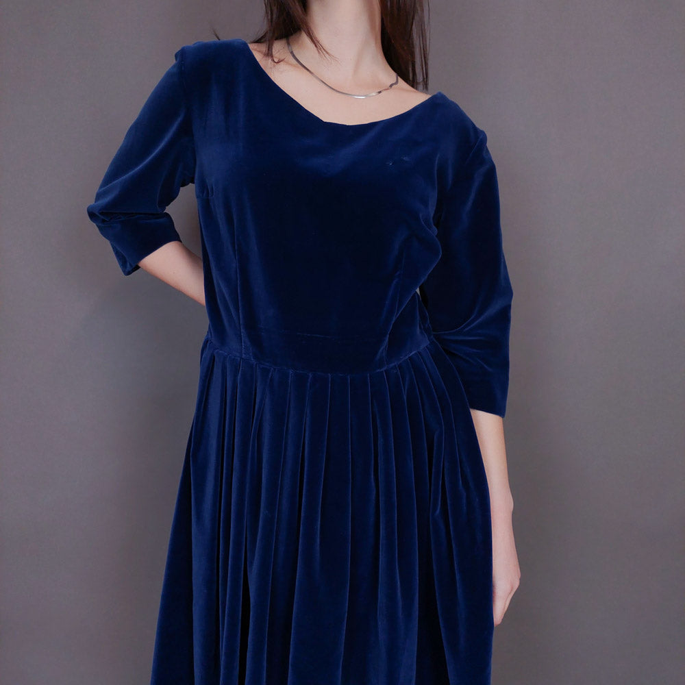 VIN-DR-32950 Vintage φόρεμα μπλε βελουτέ L-XL