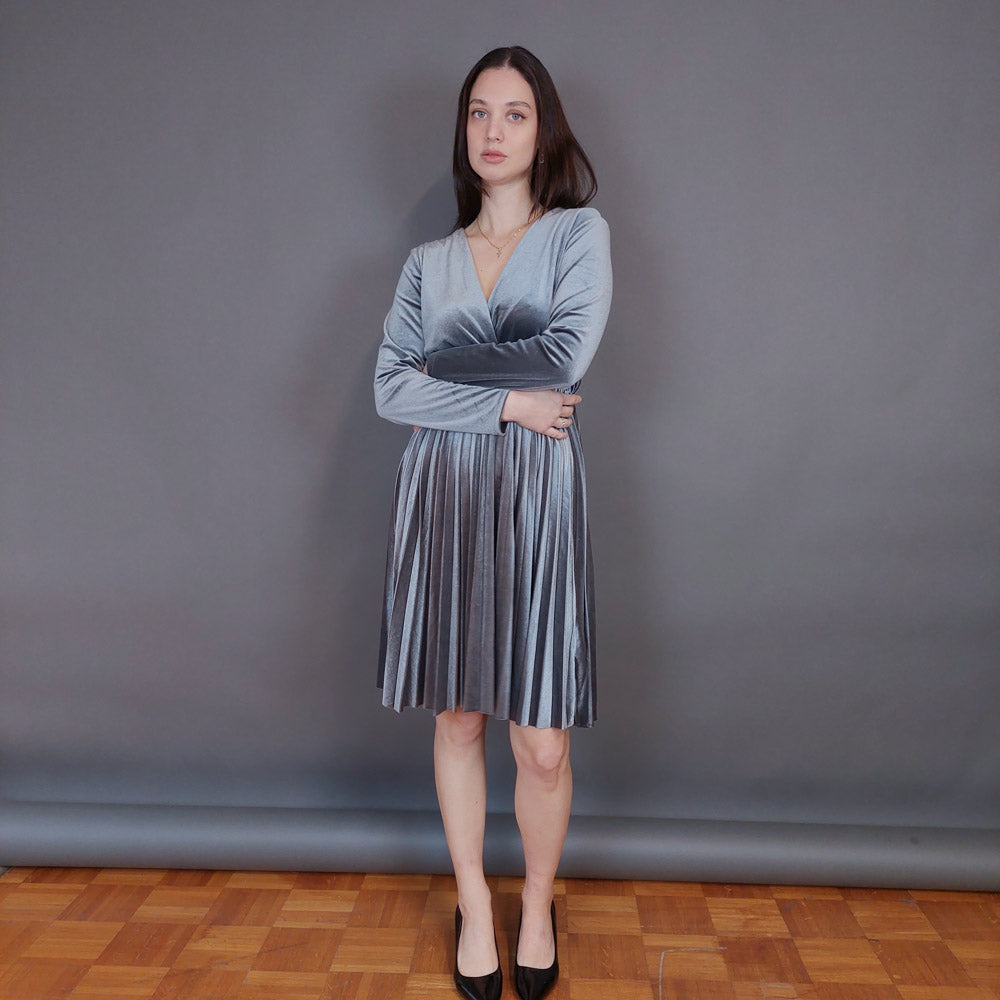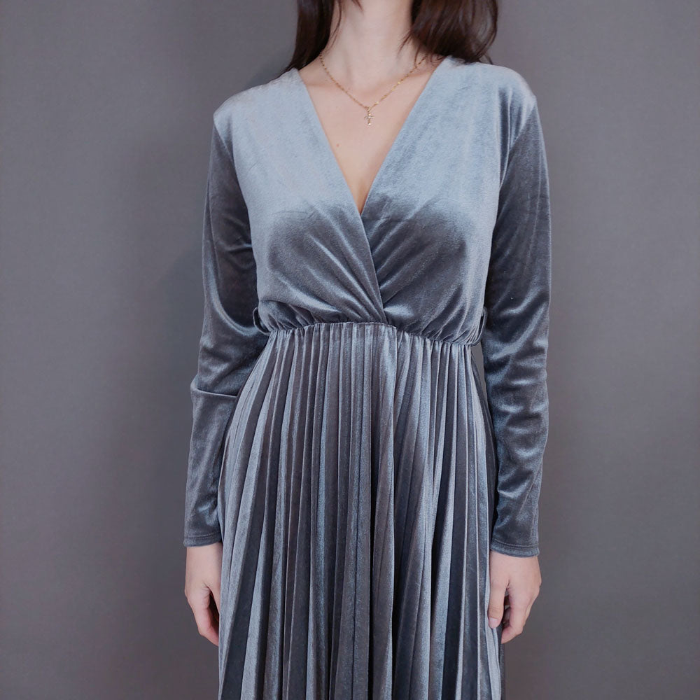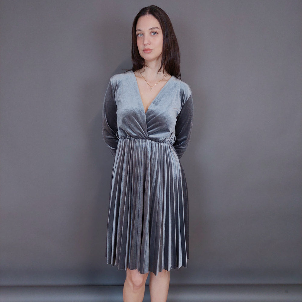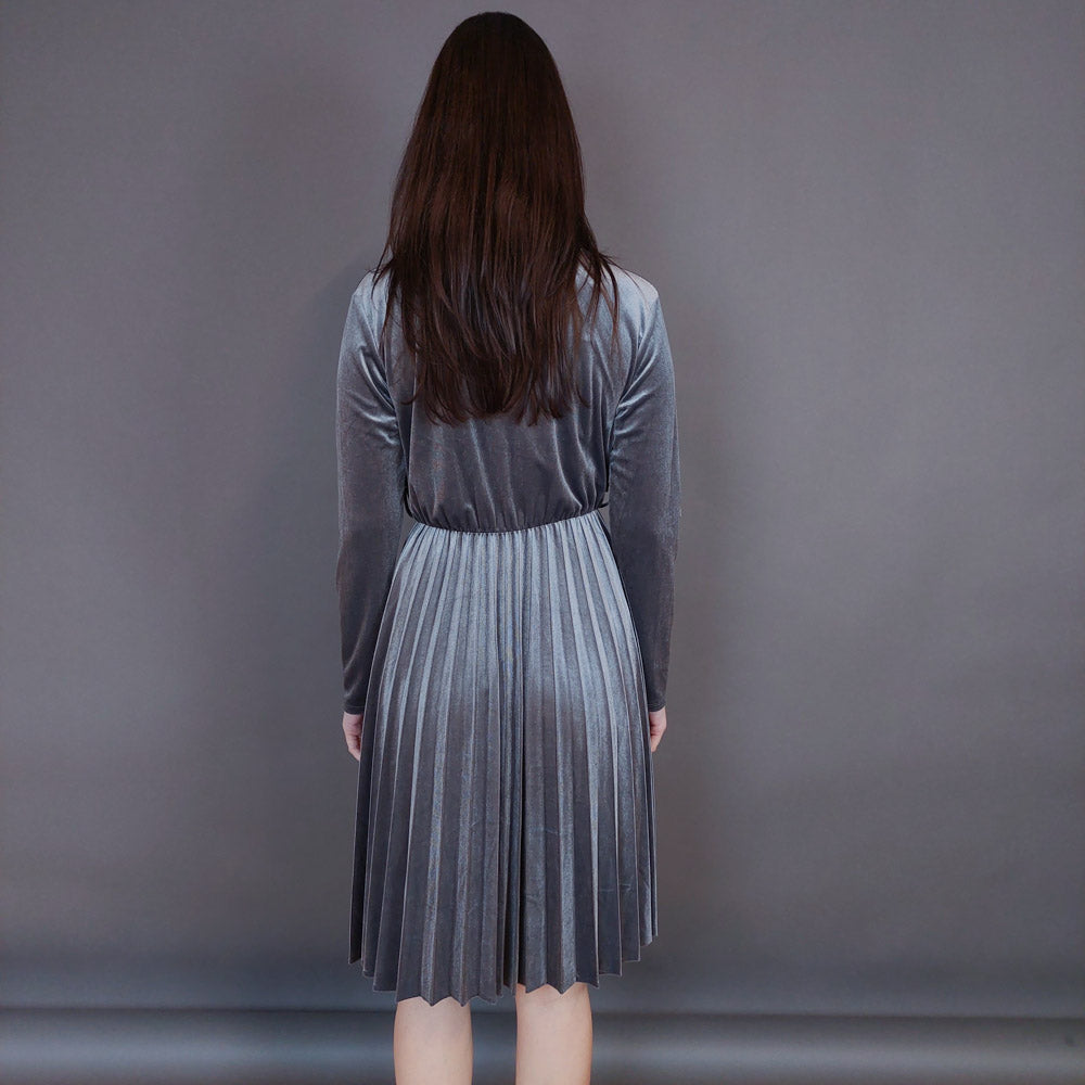VIN-DR-33290 Vintage φόρεμα βελουτέ πλισέ γκρι L