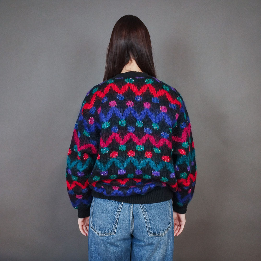 VIN-KNIT-33442 Vintage πλεκτή μοχέρ ζακέτα L