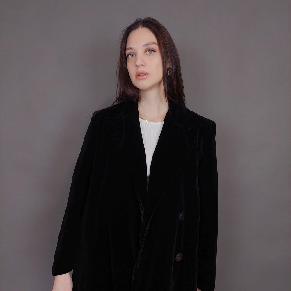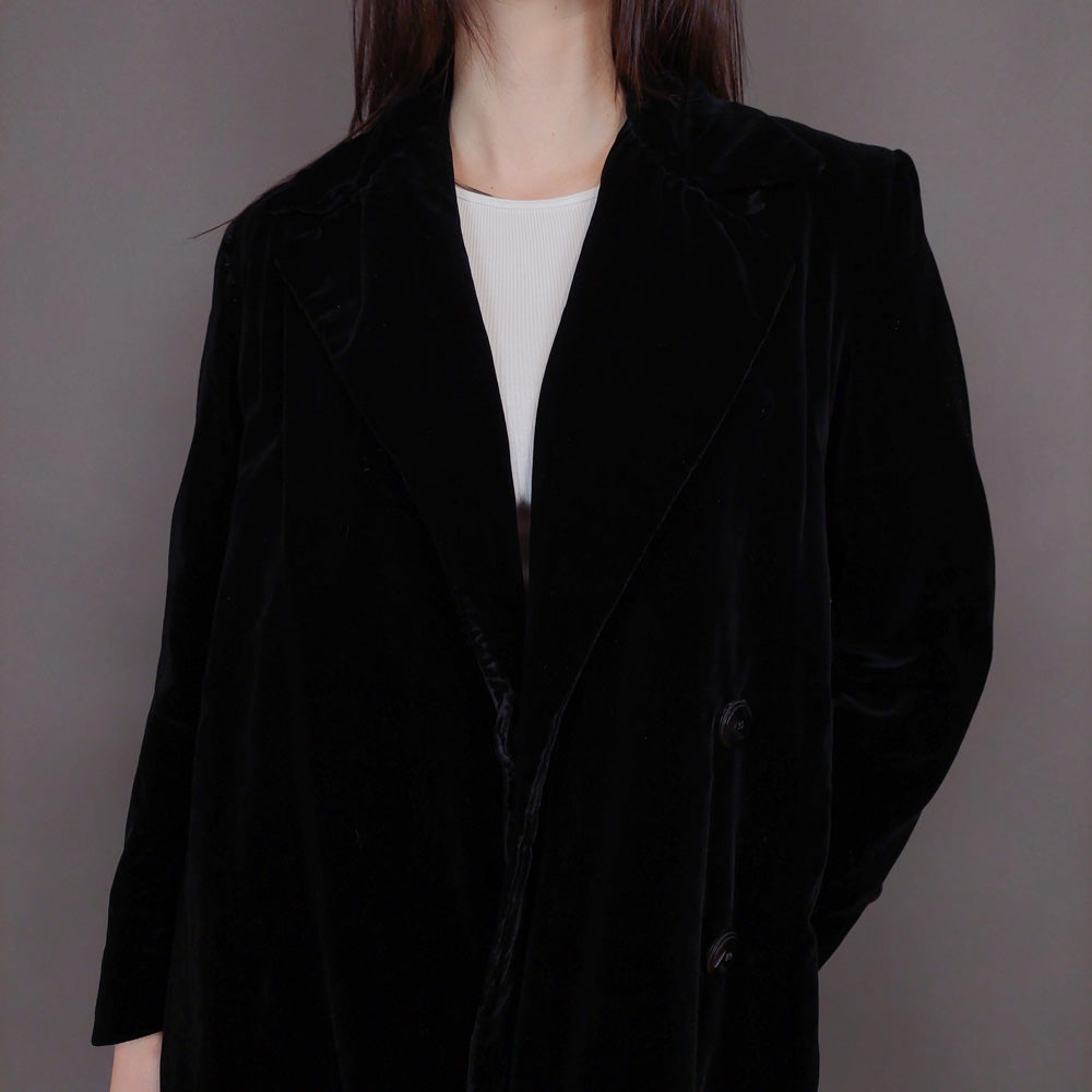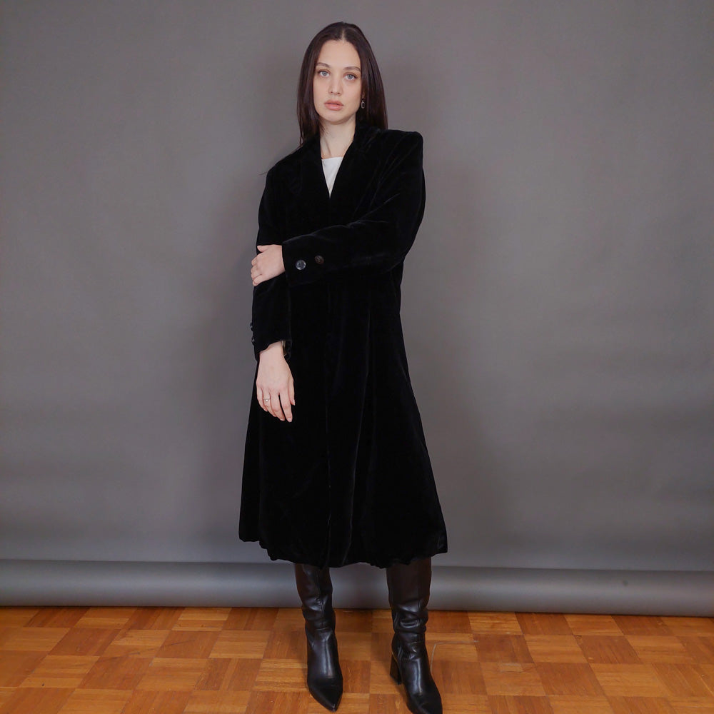 VIN-OUTW-32899 Vintage παλτό βελουτέ μαύρο S