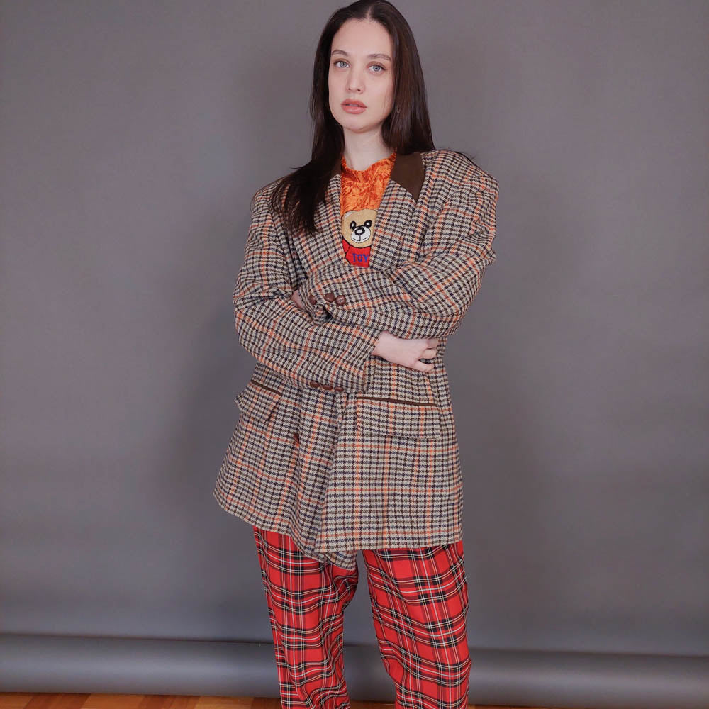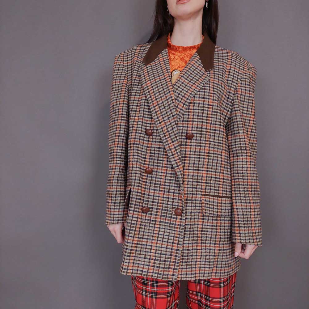 VIN-OUTW-32942 Vintage σακάκι μάλλινο pied de poule L-XL