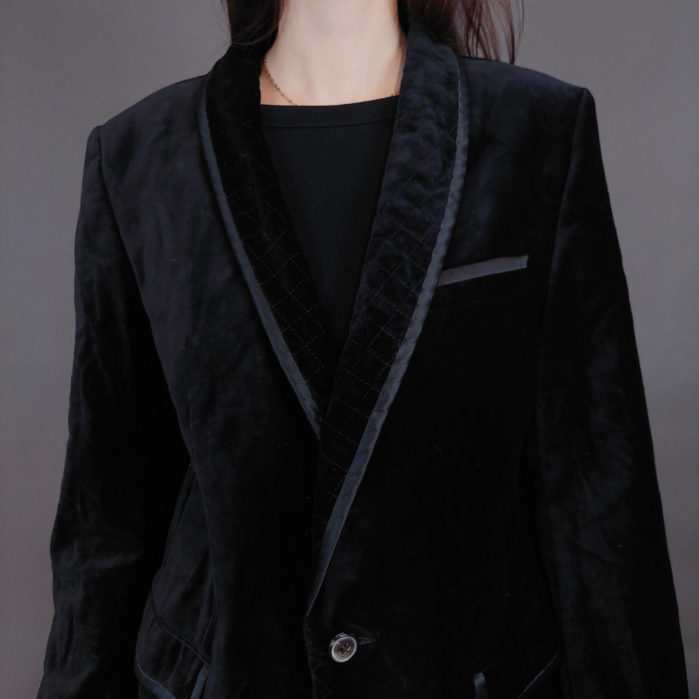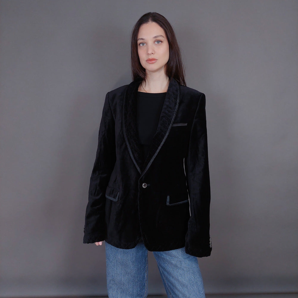 VIN-OUTW-33263 Vintage σακάκι βελουτέ μαύρο L