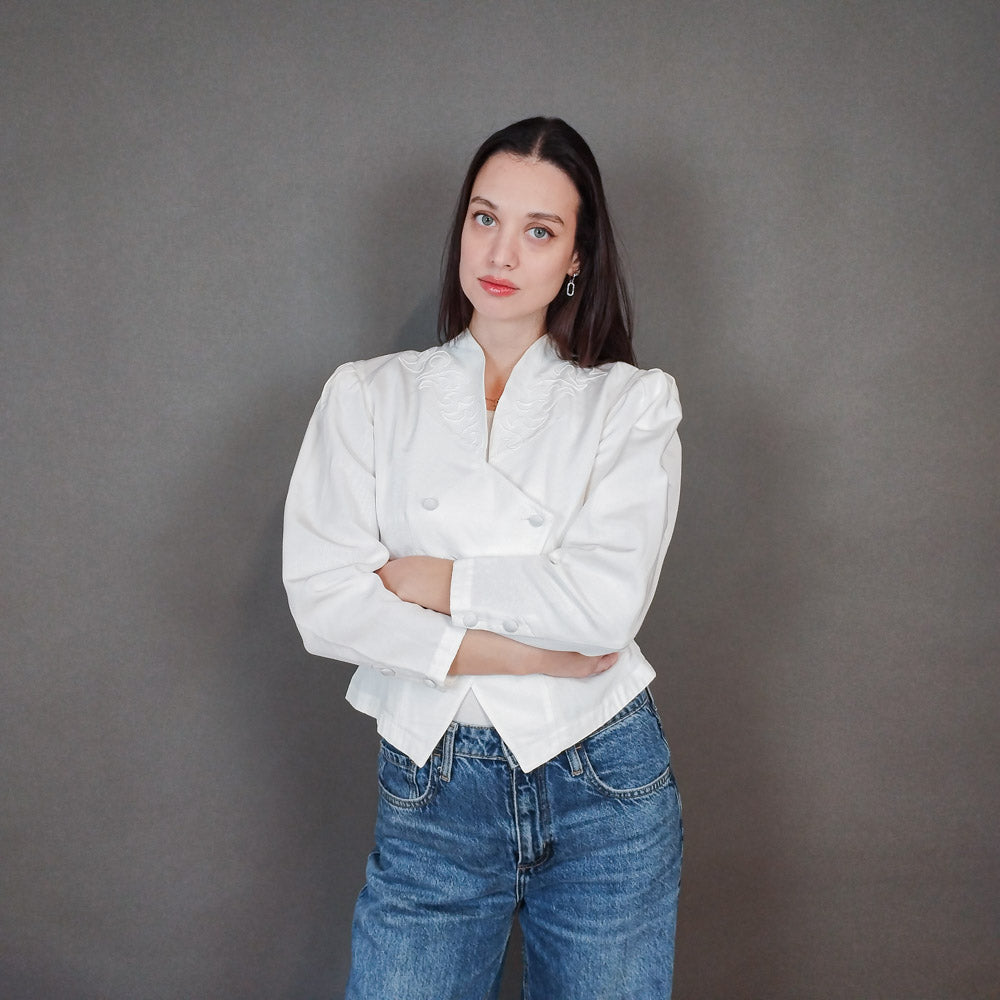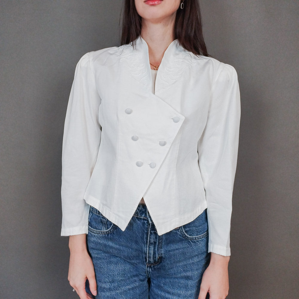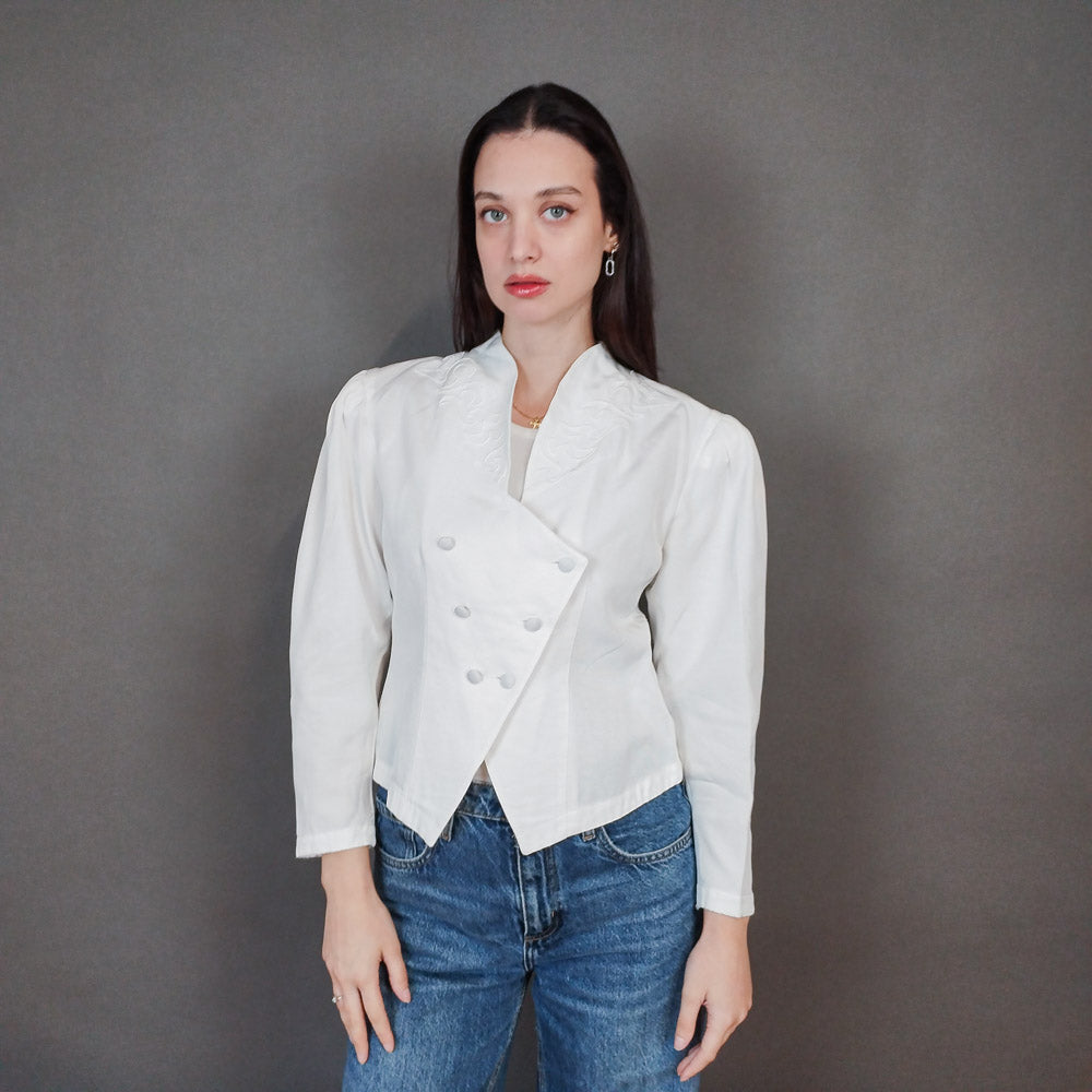 VIN-OUTW-3337 Vintage σακάκι 80s λευκό S-M