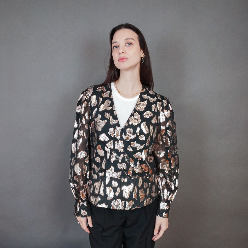 VIN-OUTW-33385 Vintage τοπ ημιδιαφανές με μεταλιζέ λεπτομέρειες L-XL