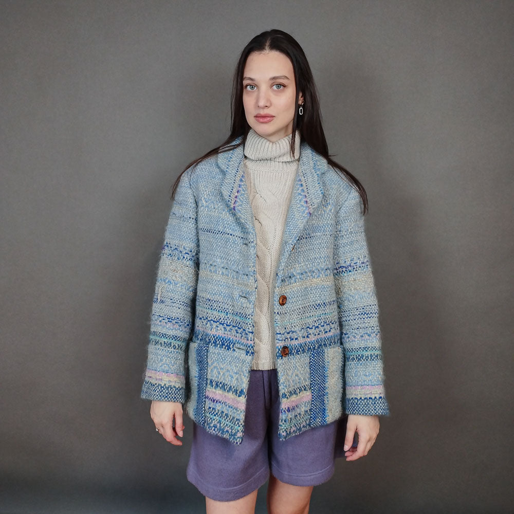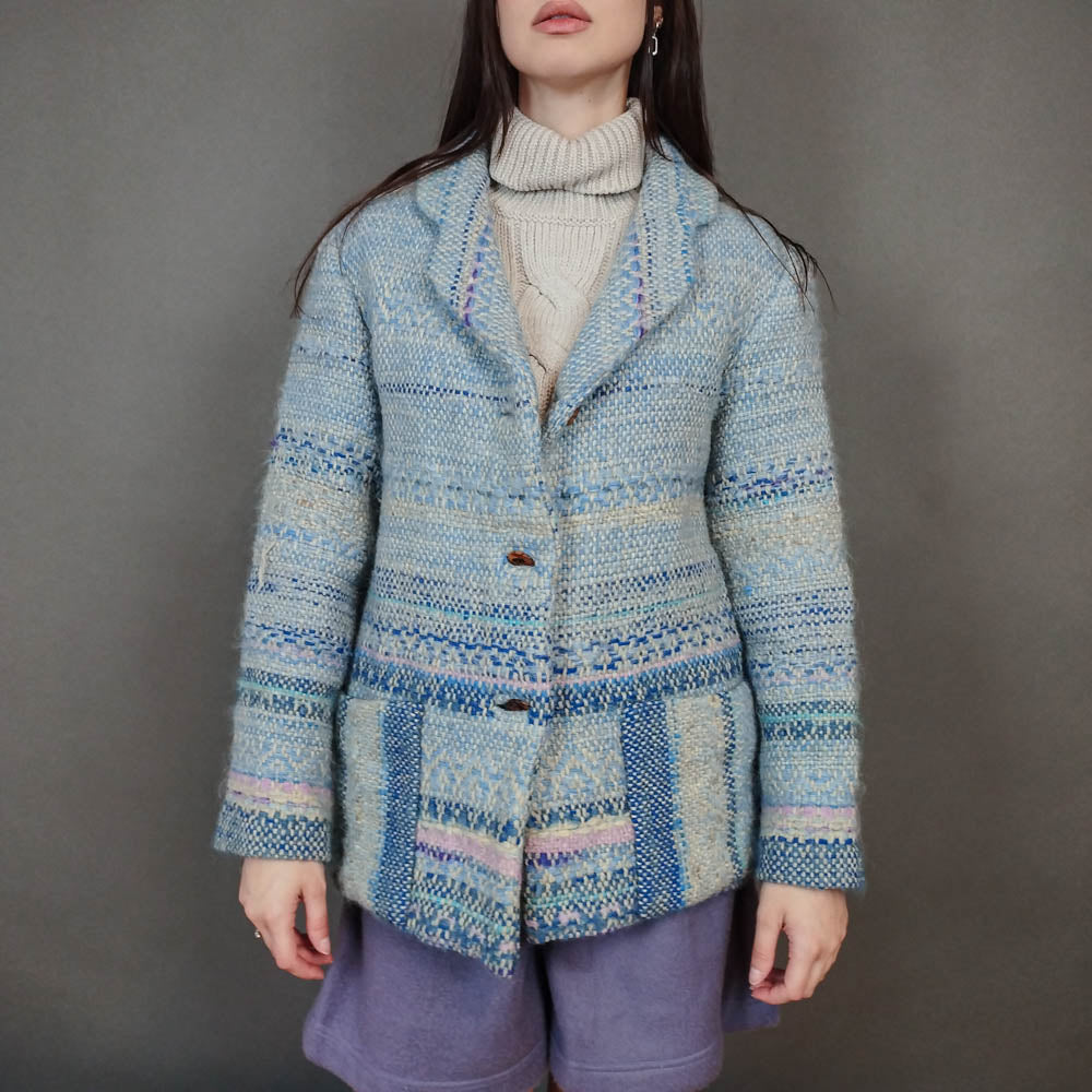 VIN-OUTW-33420 Vintage παλτό γυναικείο χειροποίητο ολόμαλλο S-M
