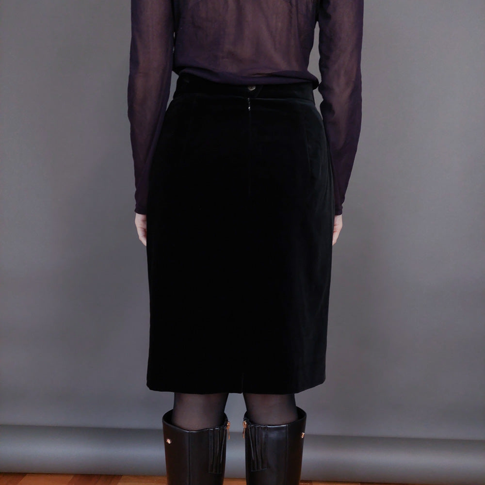 VIN-SKI-32929 Vintage βελουτέ φούστα μαύρη M