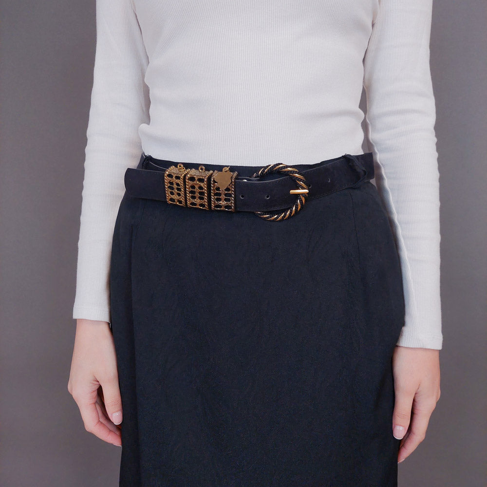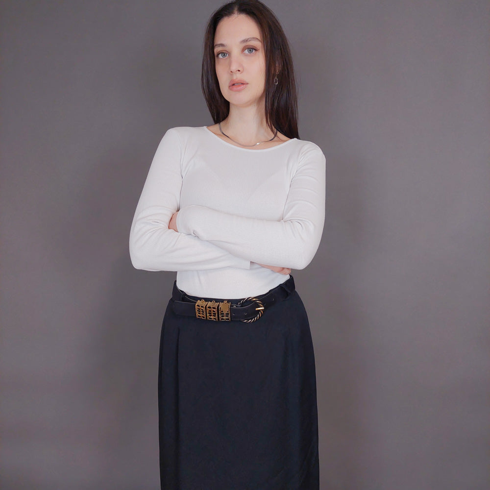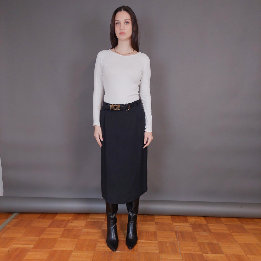 VIN-SKI-32966 Vintage φούστα μαύρη με ζώνη M
