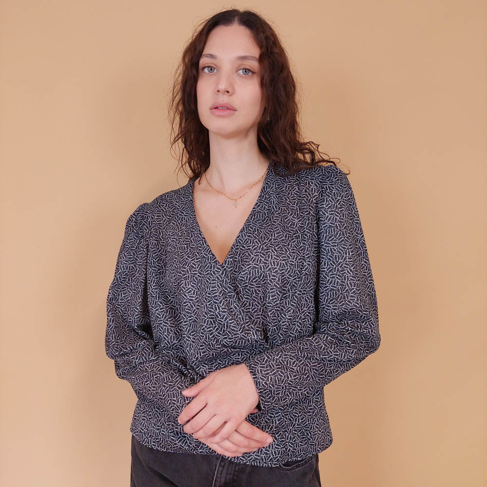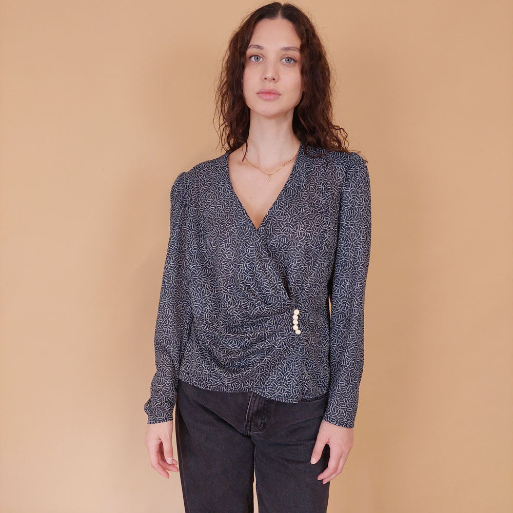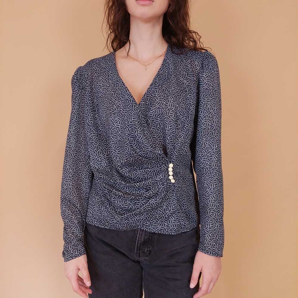 VIN-BLO-32156 Vintage πουκάμισο μαύρο κρουαζέ M-L