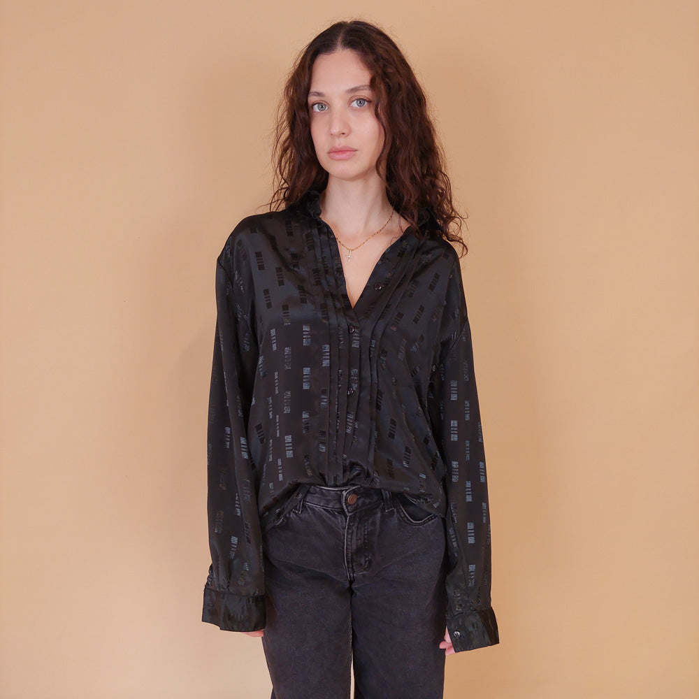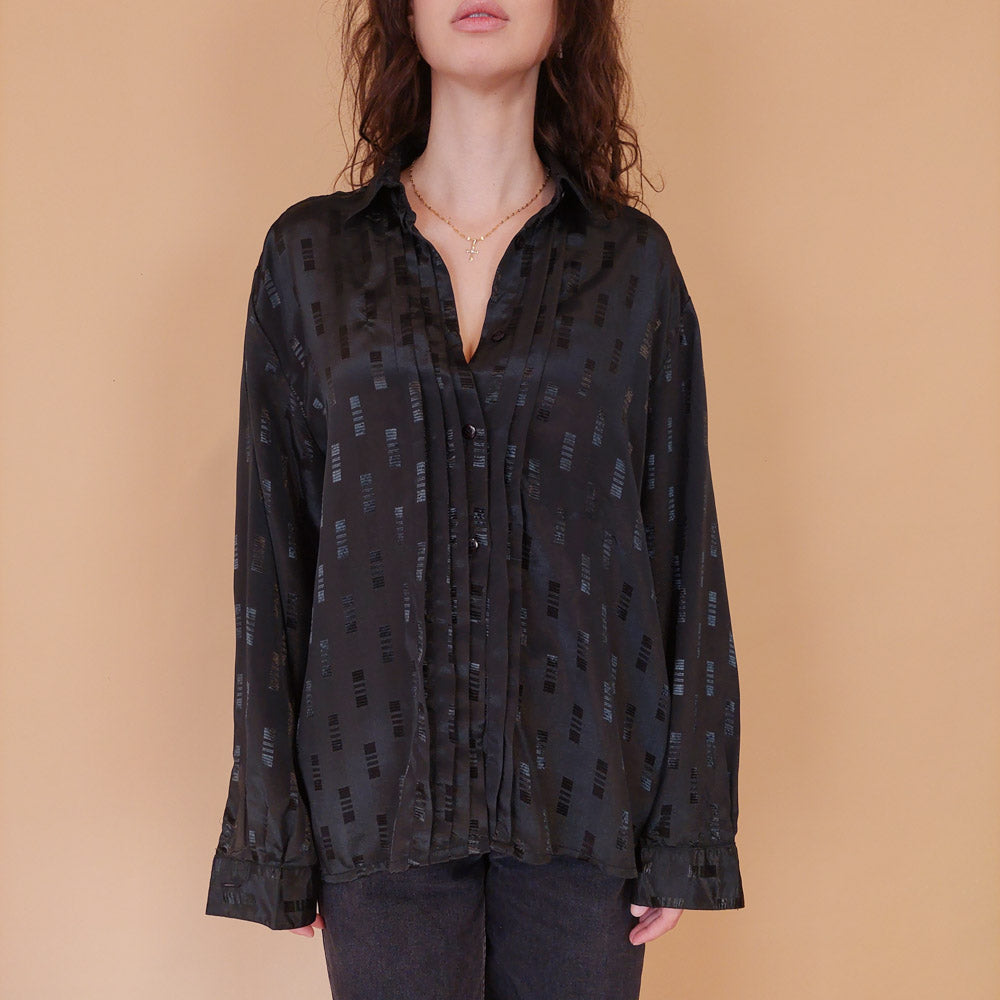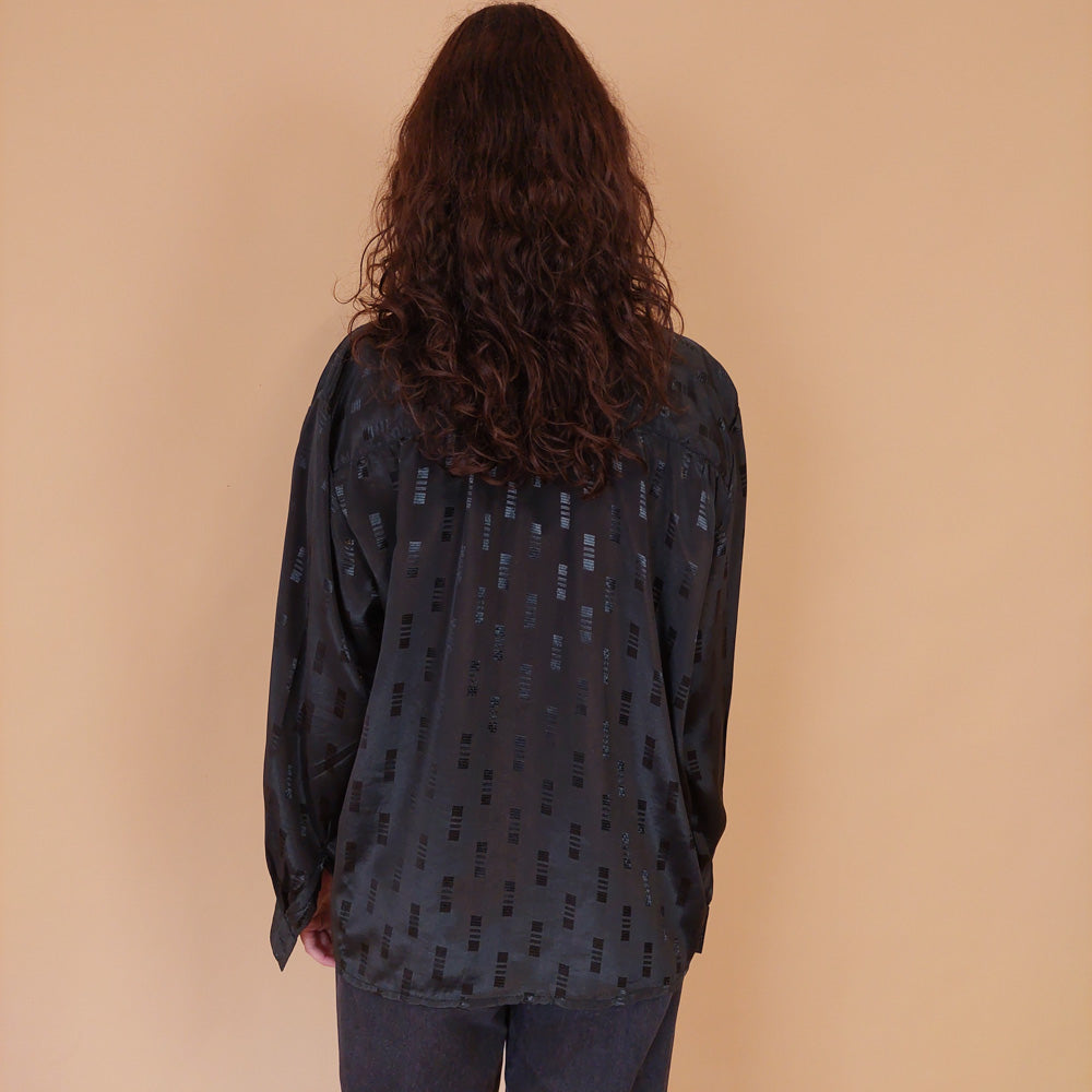 VIN-BLO-32157 Vintage πουκάμισο μαύρο σατινέ L