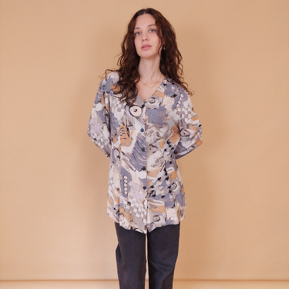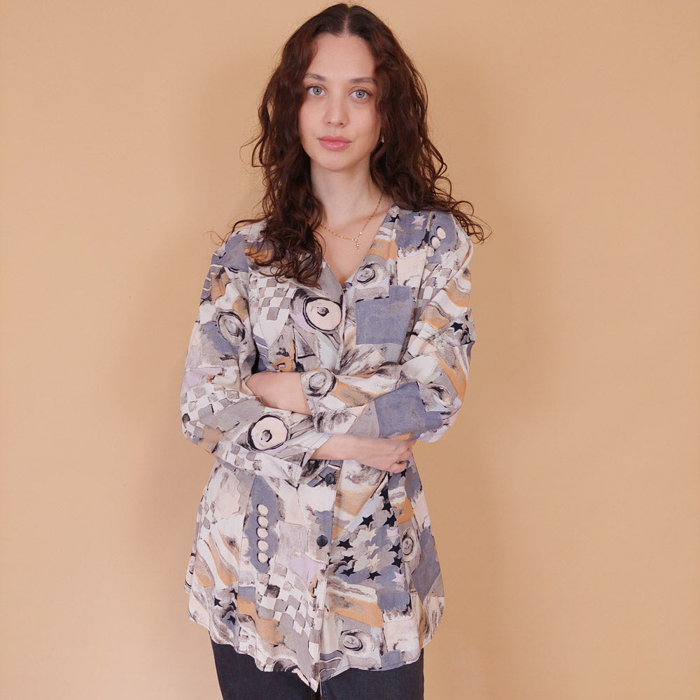 VIN-BLO-32160 Vintage πουκάμισο εμπριμέ L