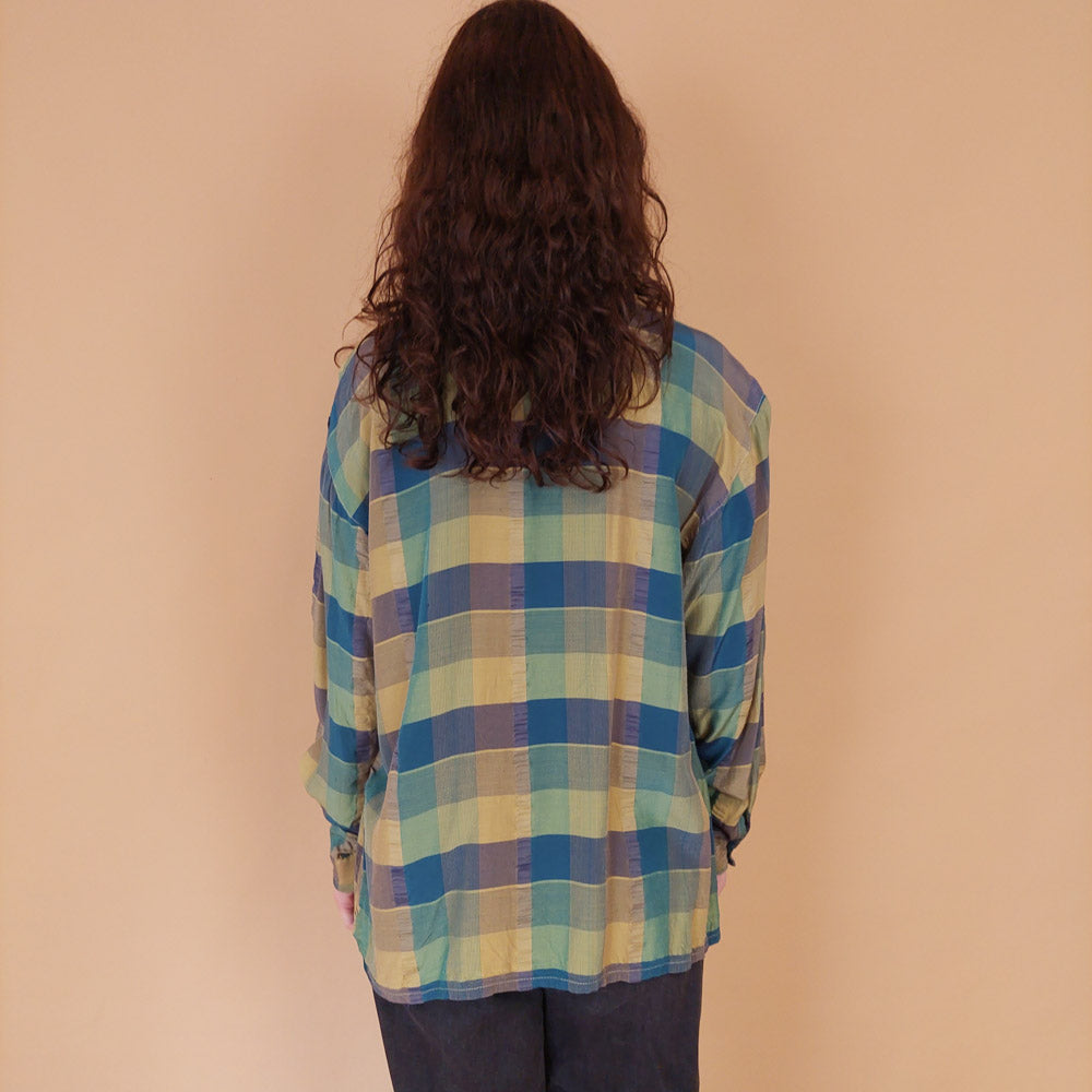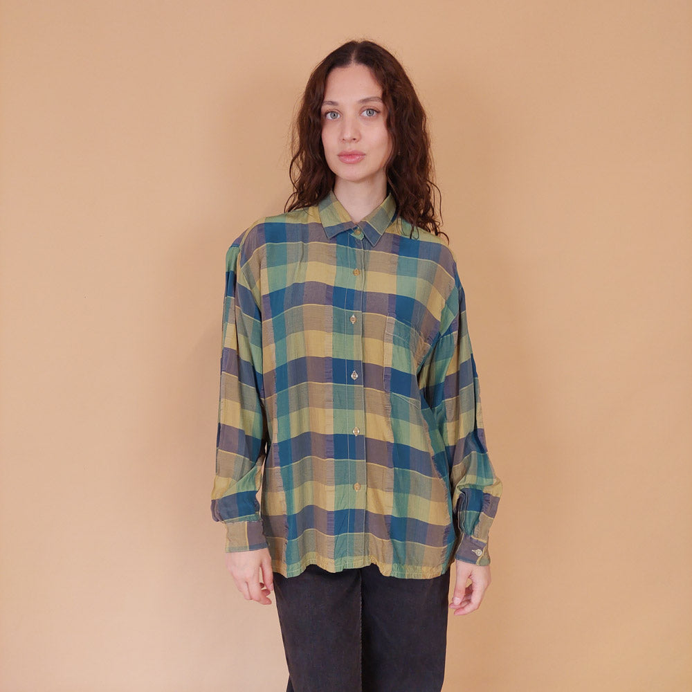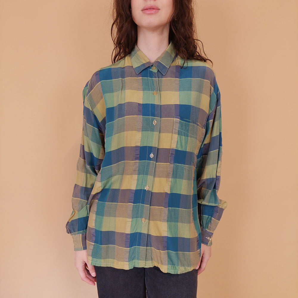 VIN-BLO-32166 Vintage πουκάμισο βισκόζη καρό M-L