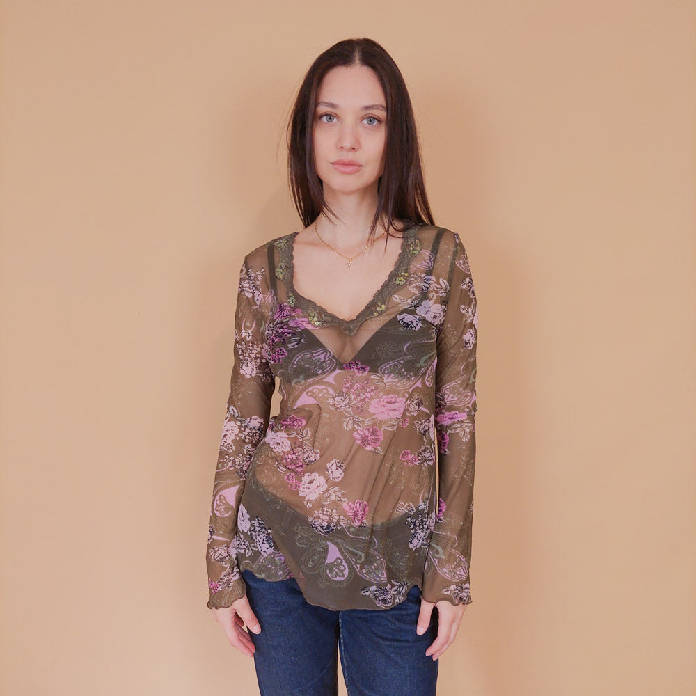 VIN-BLO-32544 Vintage τοπ λαδί τούλι M-L