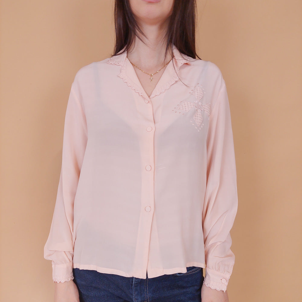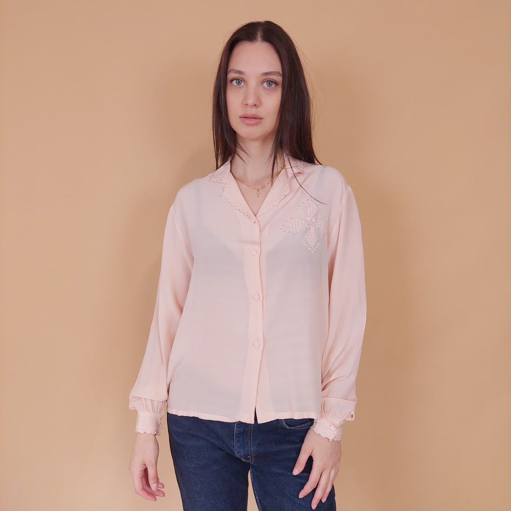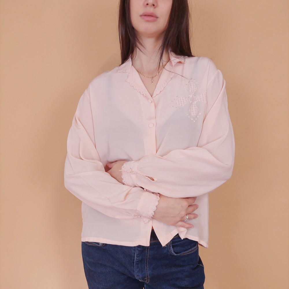 VIN-BLO-32548 Vintage πουκάμισο μεταξωτό ροζ L-XL