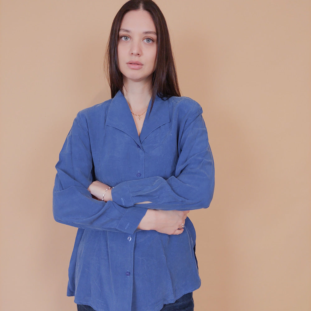 VIN-BLO-32605 Vintage πουκάμισο μπλε M-L