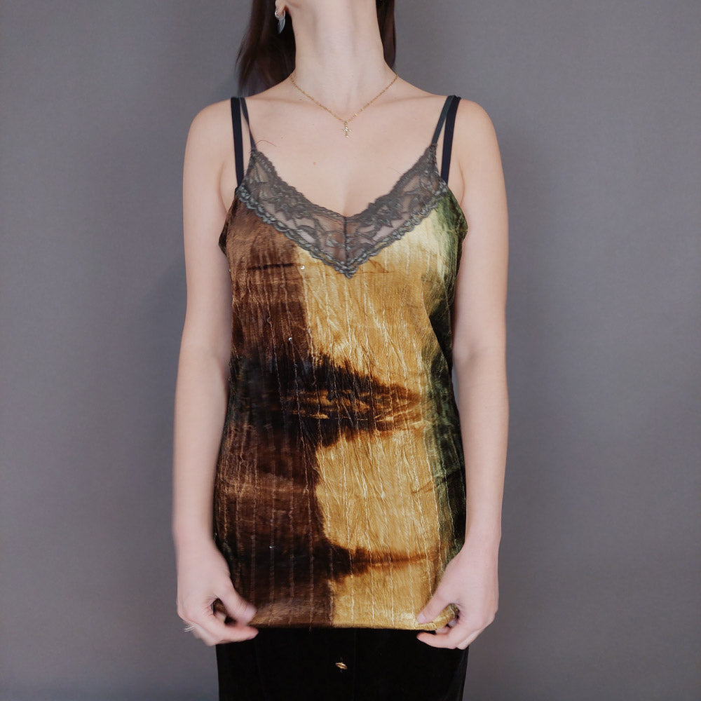 VIN-BLO-33278 Vintage τοπ βελουτέ εμπριμέ L-XL