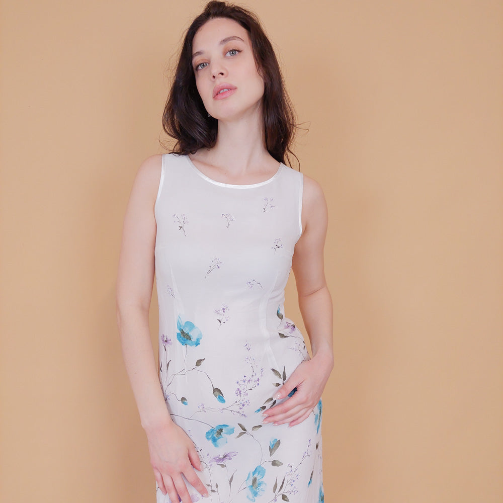 VIN-DR-31405 Vintage φόρεμα λευκό S