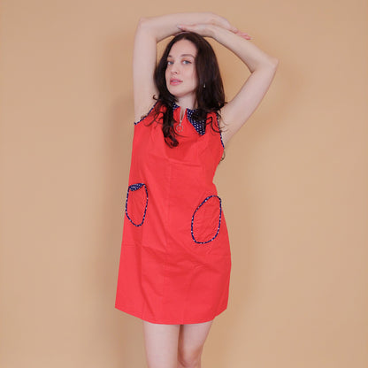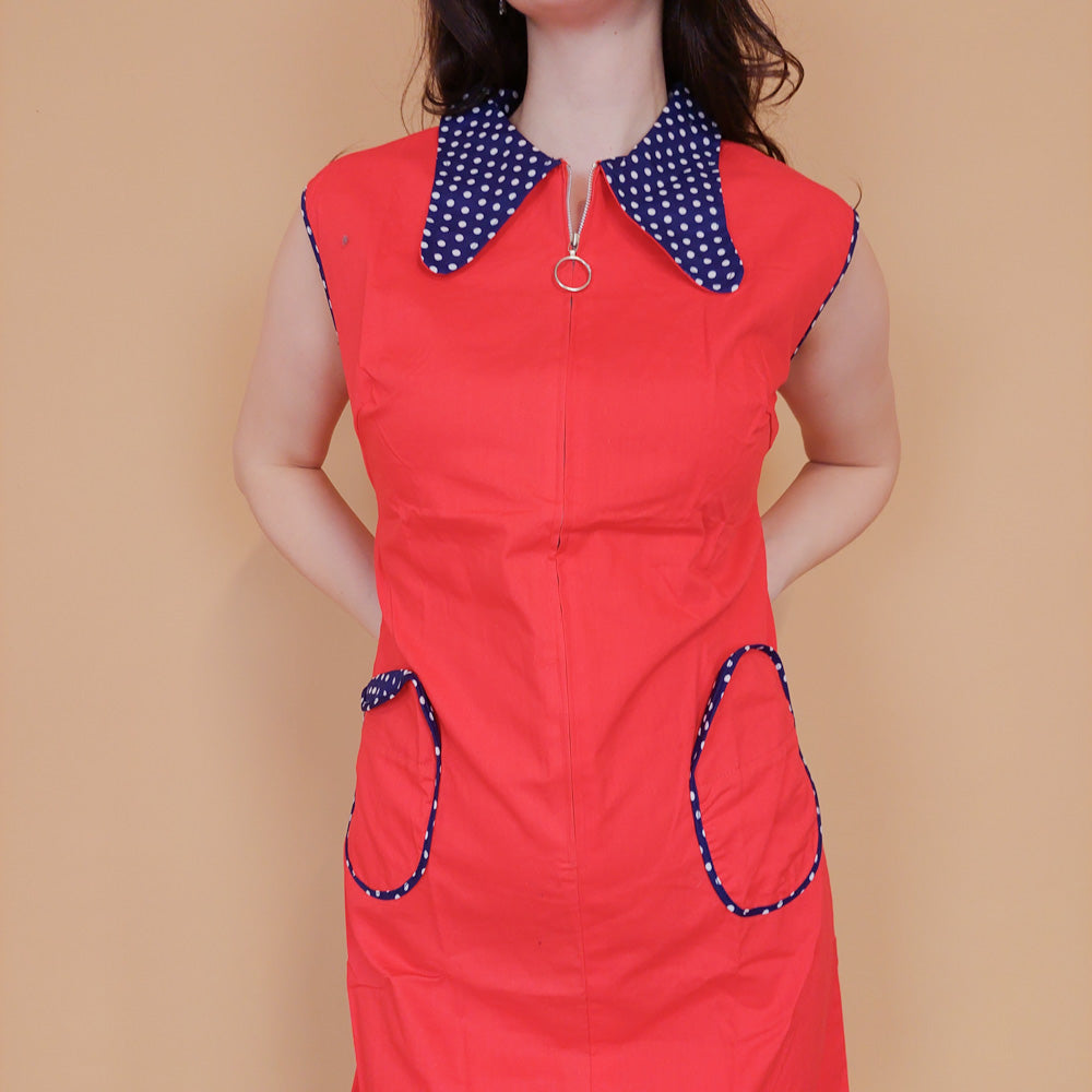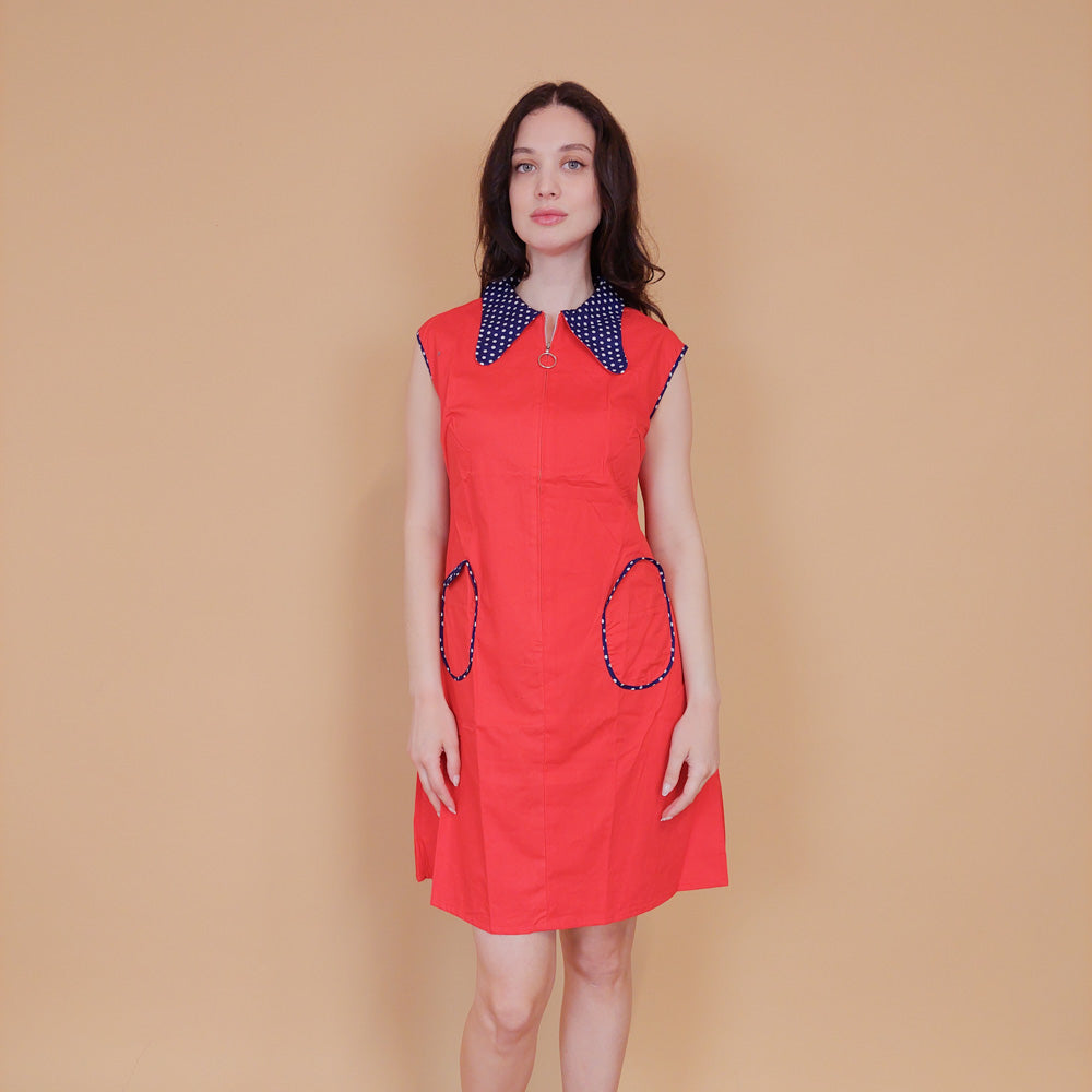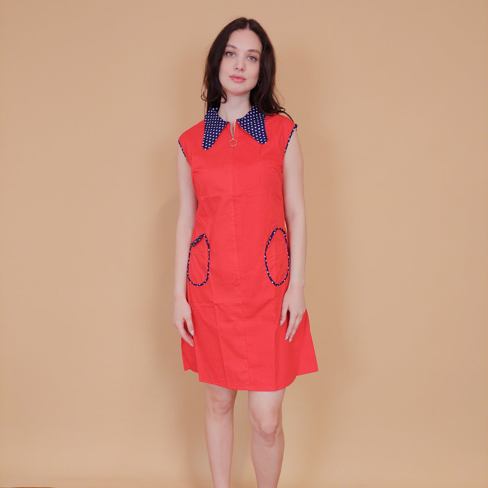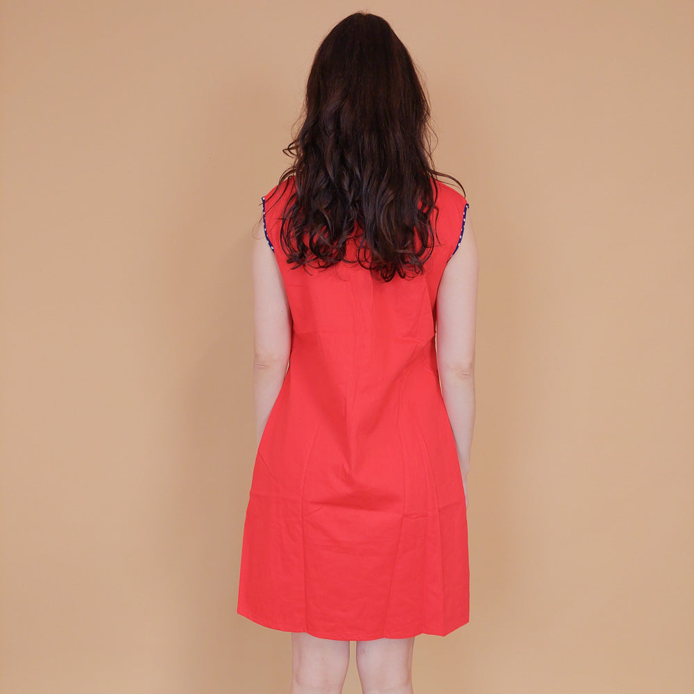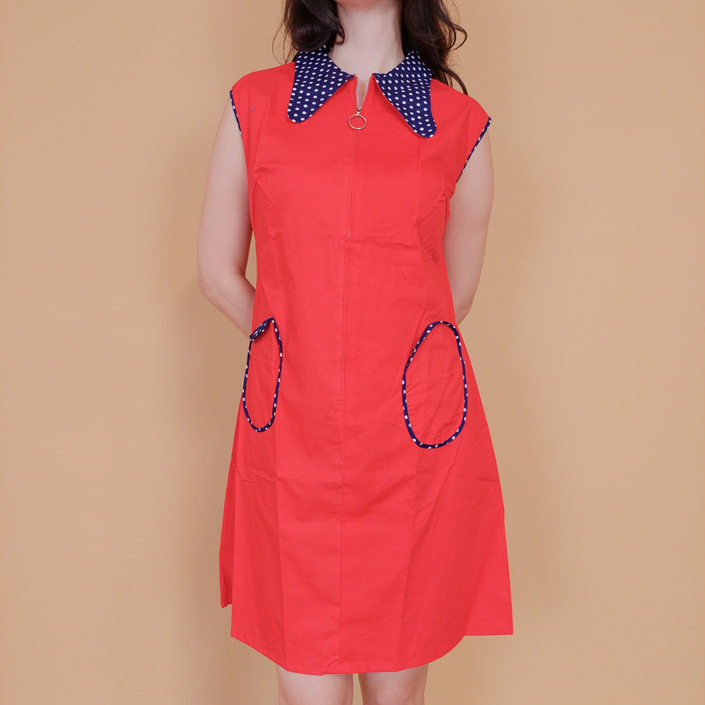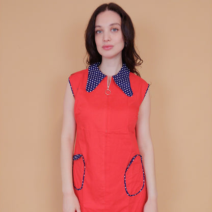 VIN-DR-31408 Vintage φόρεμα κόκκινο βαμβακερό S