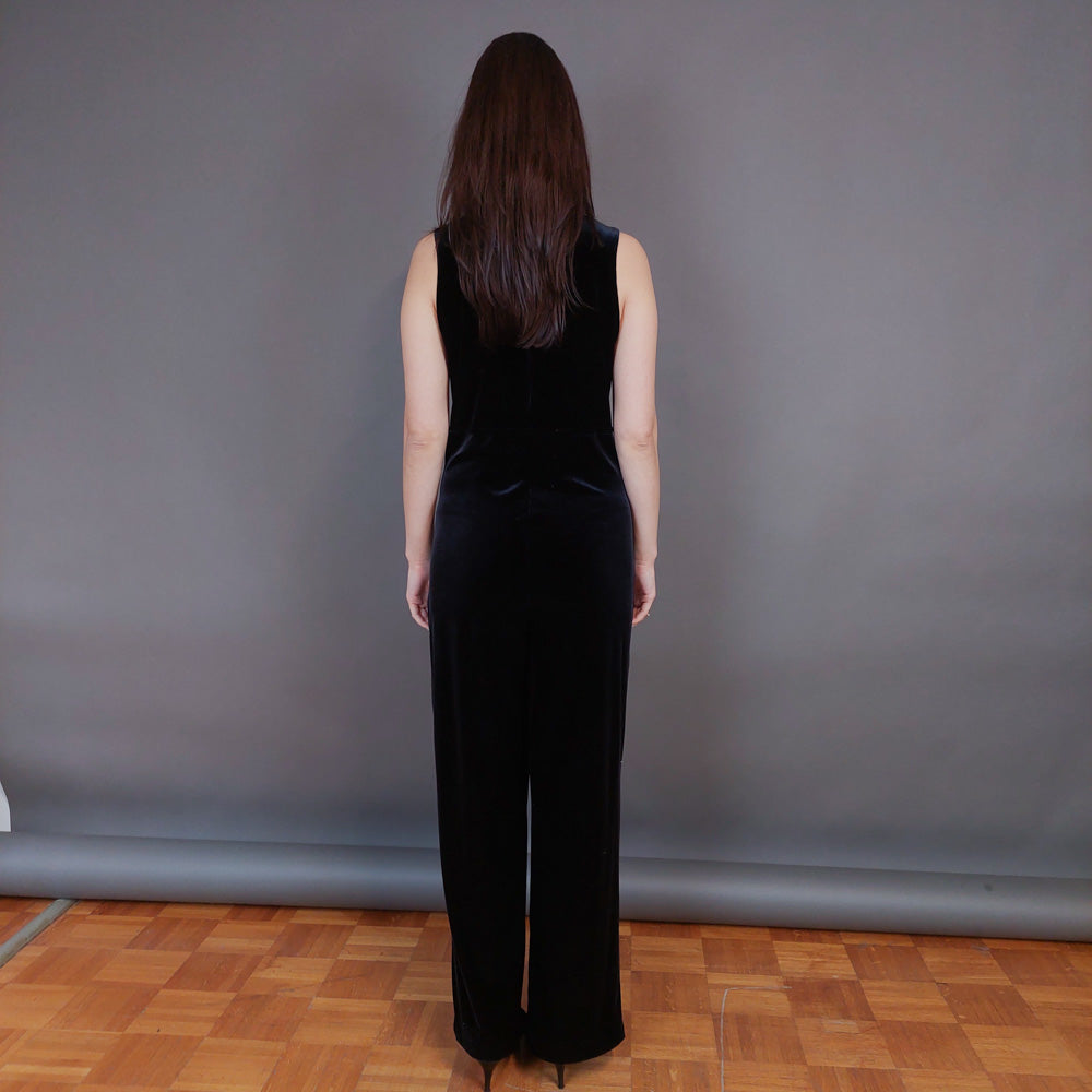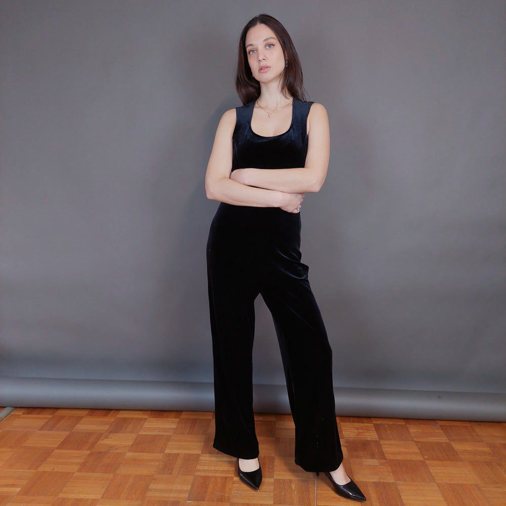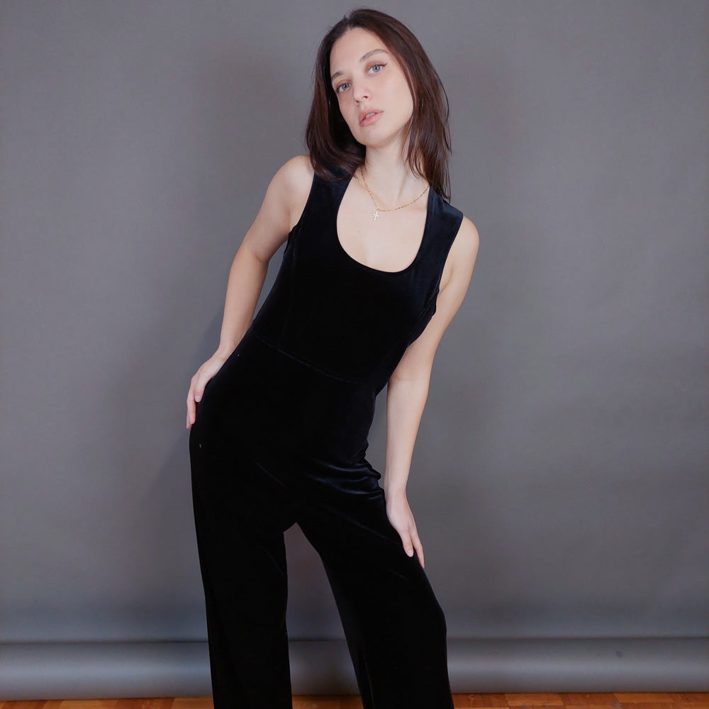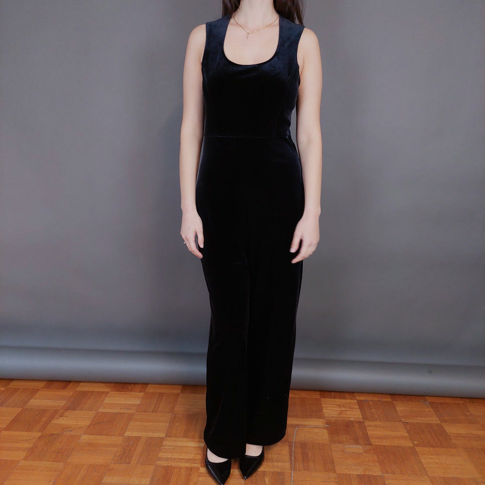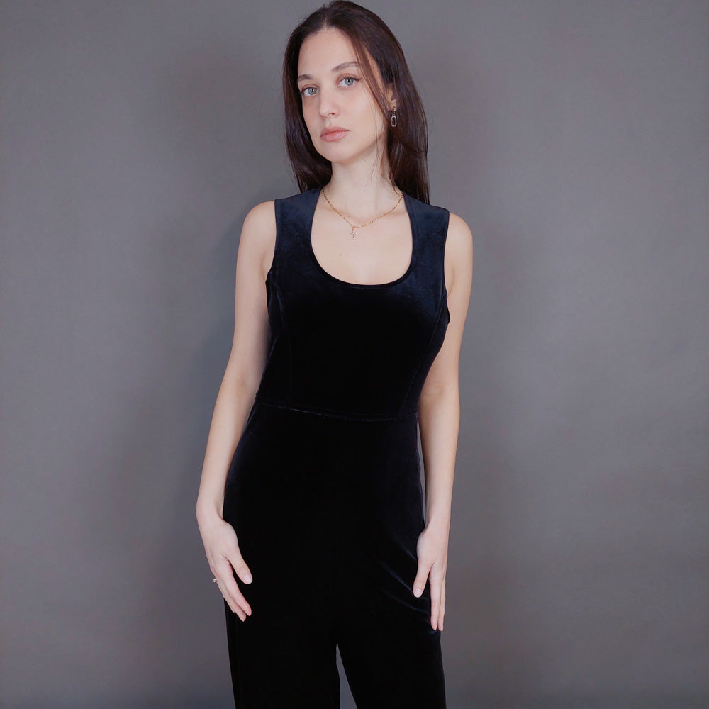 VIN-DR-33292 Vintage ολόσωμη φόρμα βελουτέ μαύρη S-M