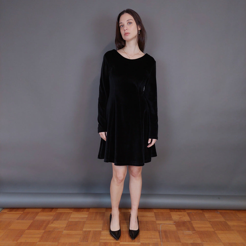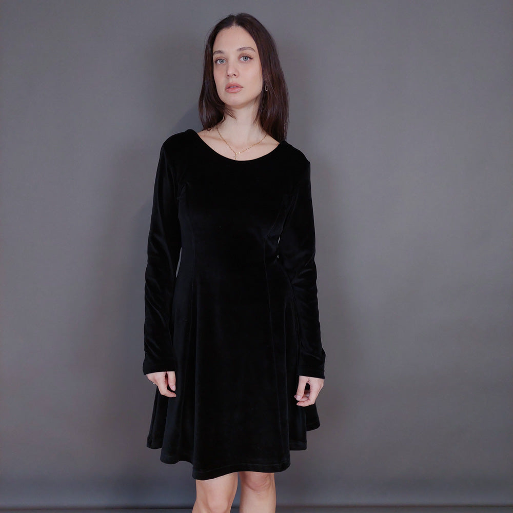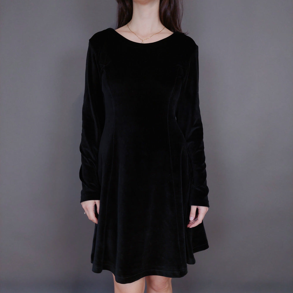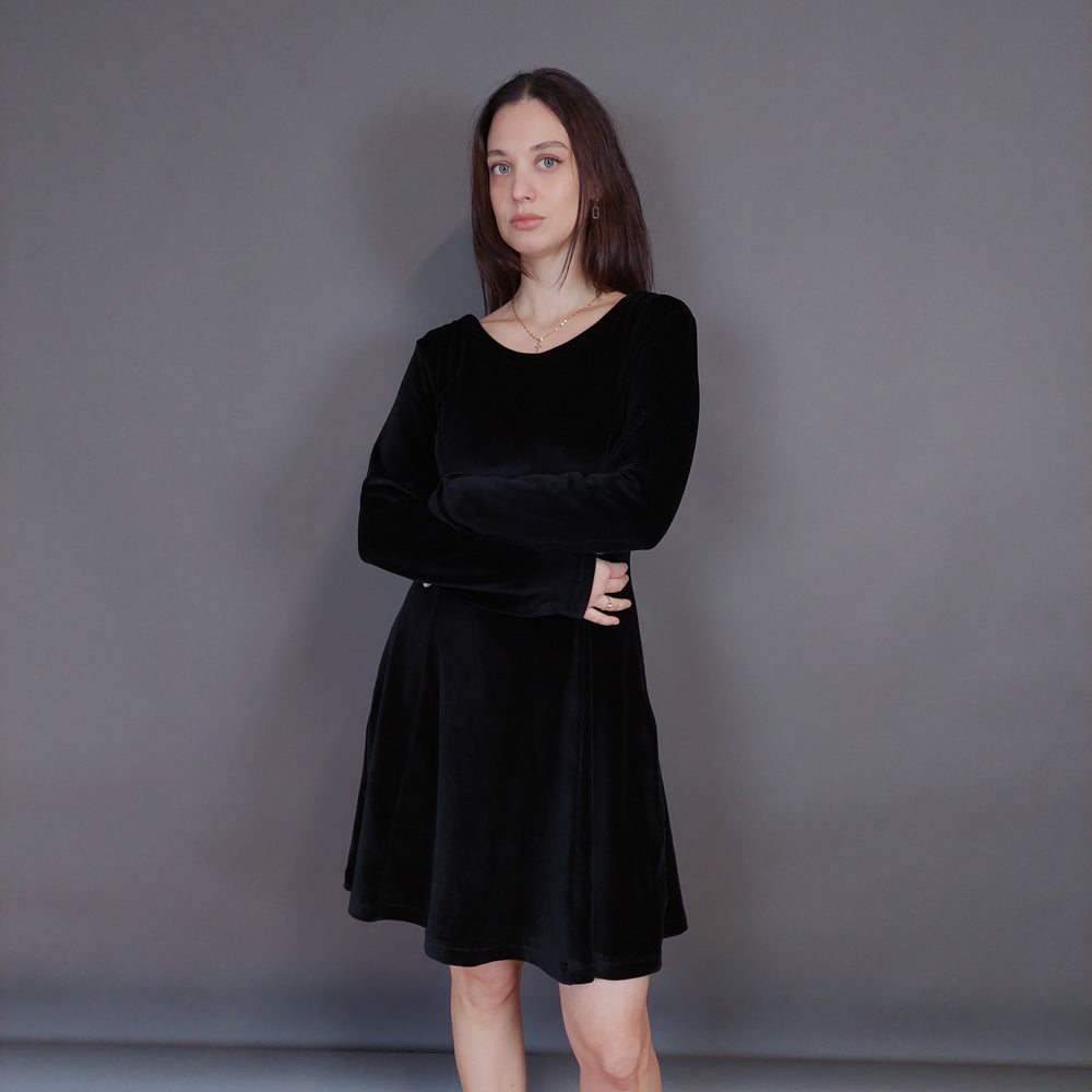 VIN-DR-33293 Vintage φόρεμα βελουτέ μαύρο M-L