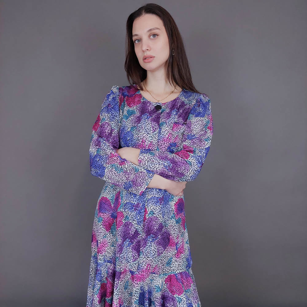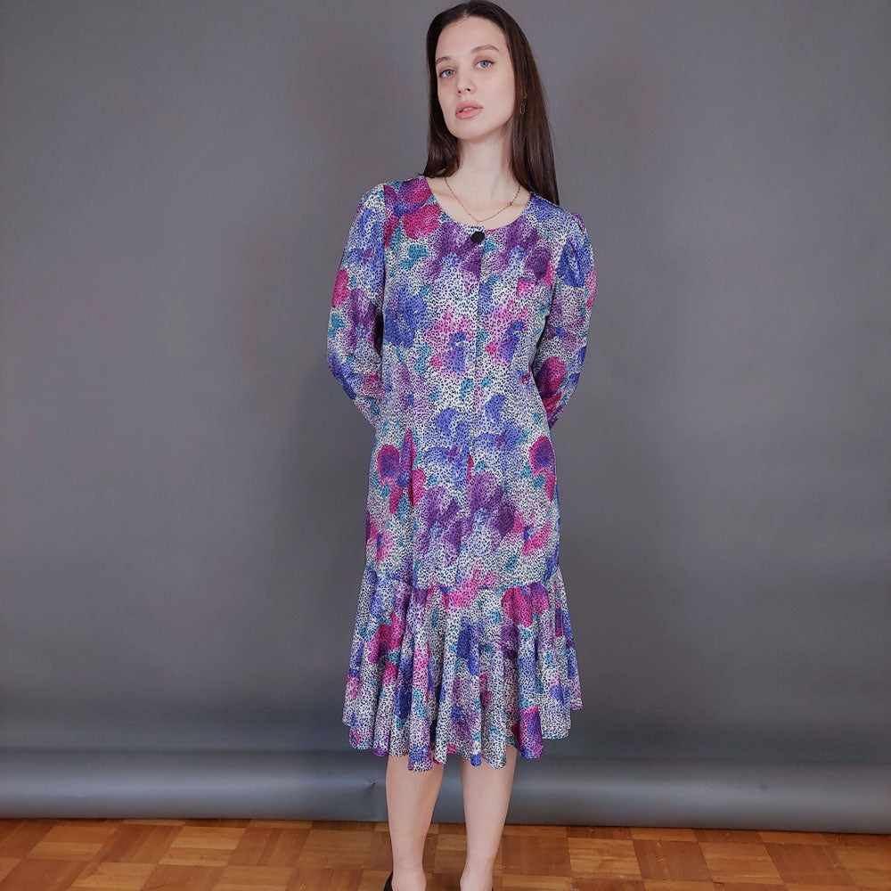VIN-DR-33567 Vintage φόρεμα εμπριμέ S-M
