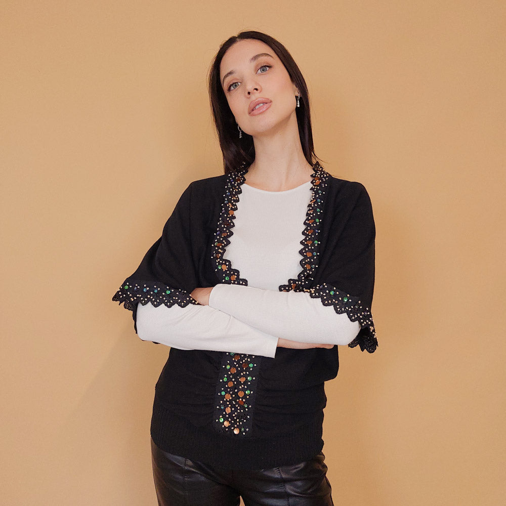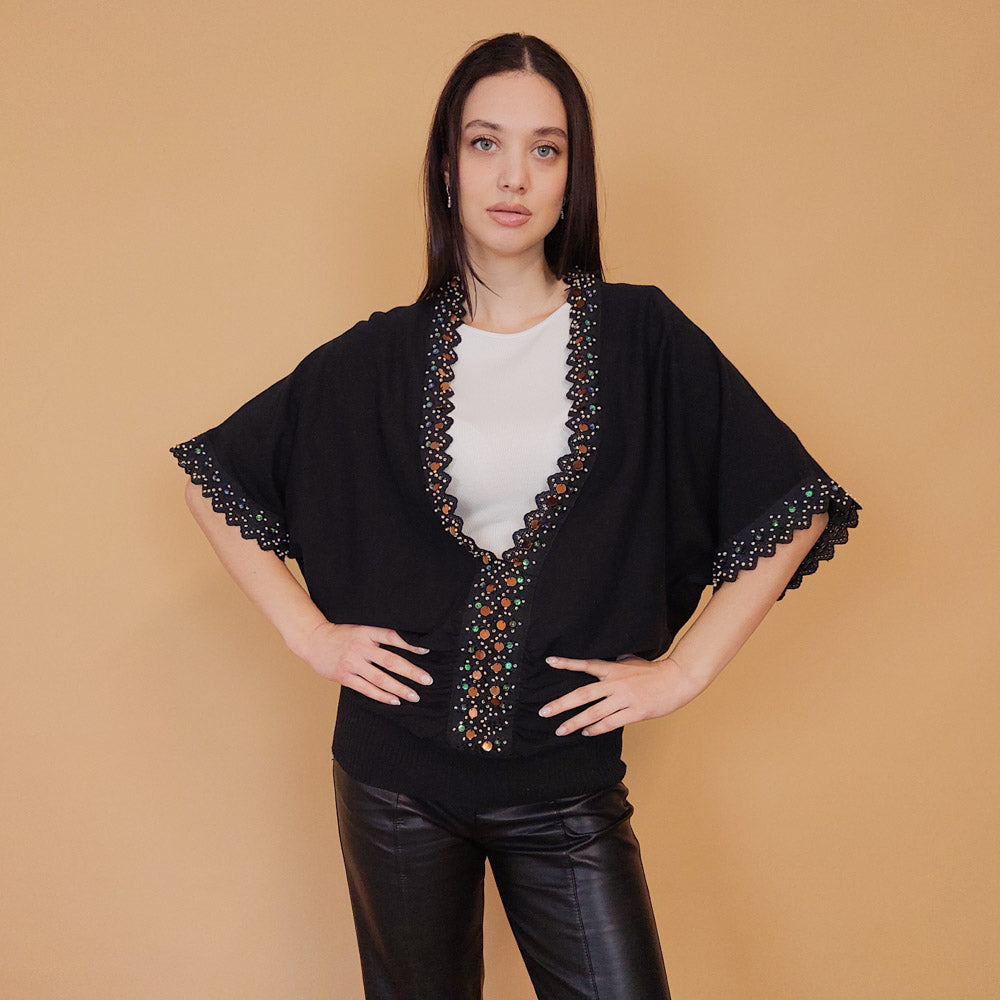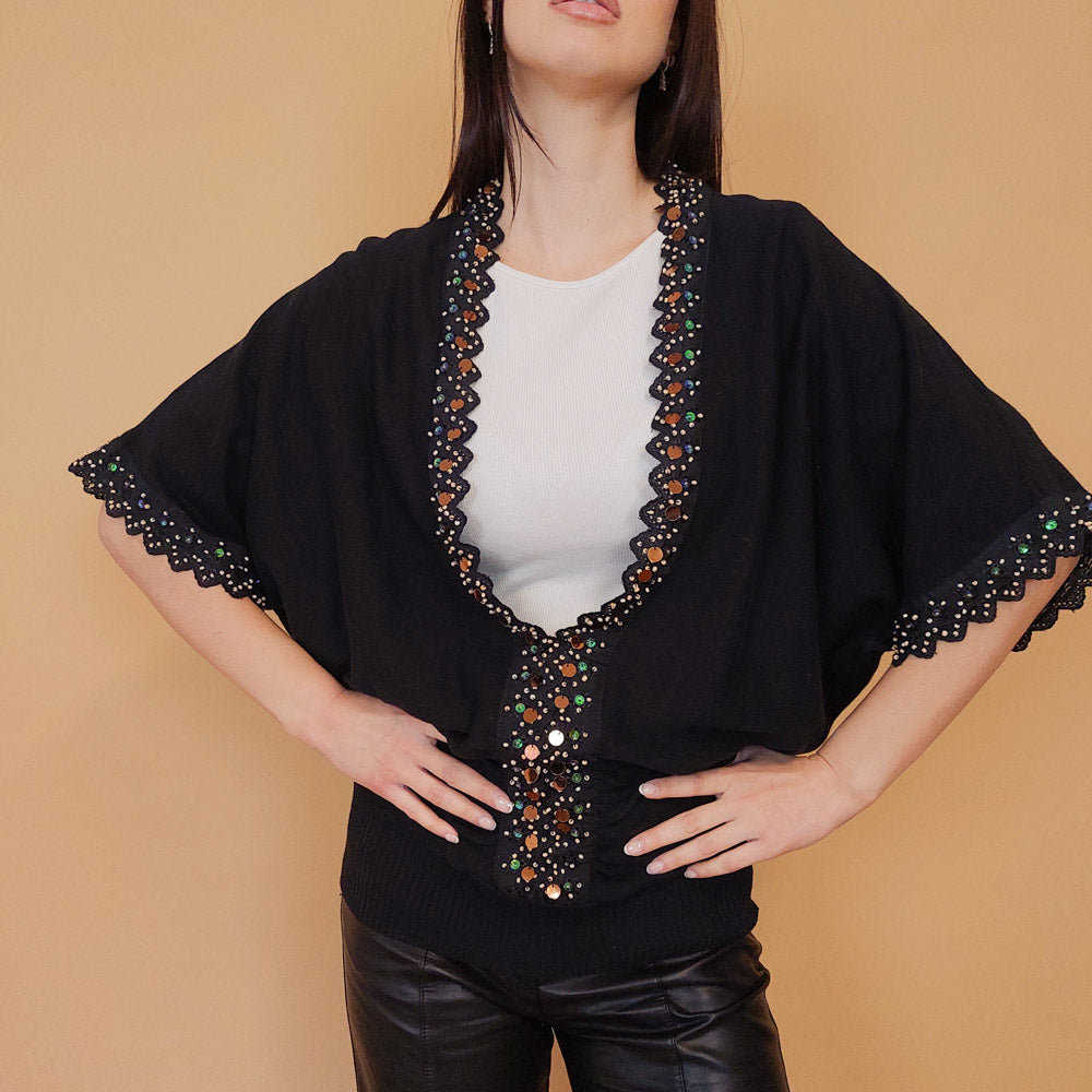 VIN-KNIT-29730 Vintage μπλούζα πλεκτή μαύρη S