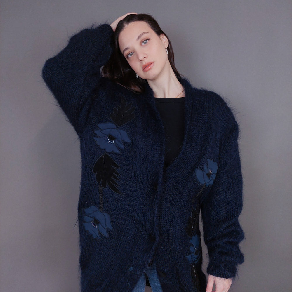 VIN-KNIT-33259 Vintage πλεκτή ζακέτα mohair μάλλινη L