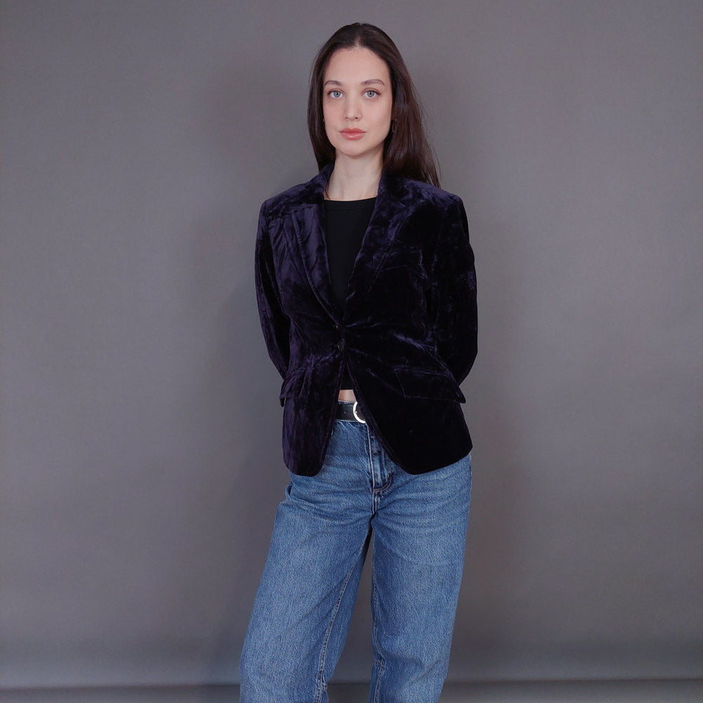 VIN-OUTW-33262 Vintage σακάκι βελουτέ μελιτζανί S