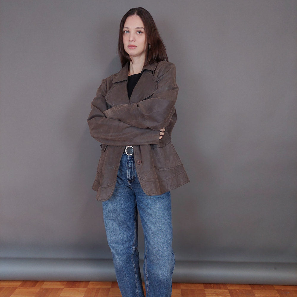 VIN-OUTW-33347 Vintage δερμάτινο σουέντ jacket καφέ 2XL