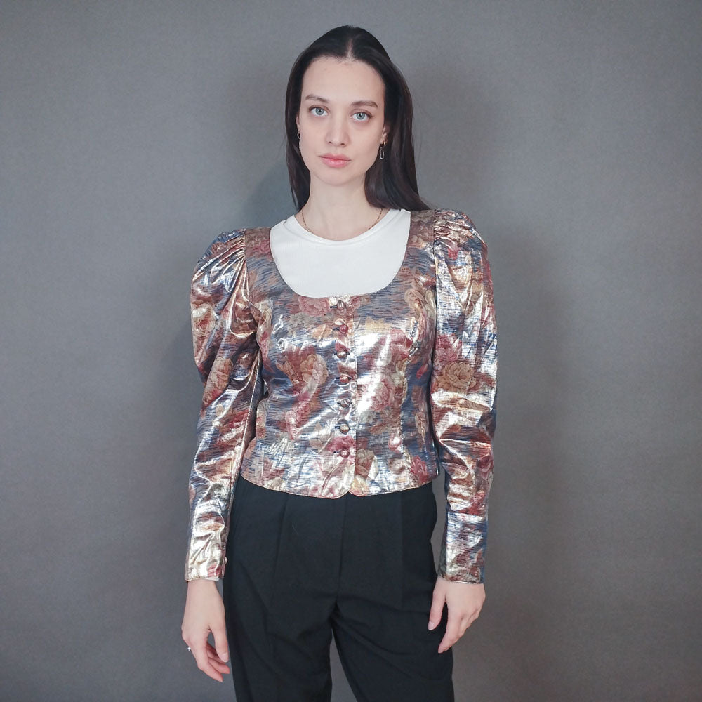 VIN-OUTW-33425 Vintage τοπ μεταλιζέ εμπριμέ L