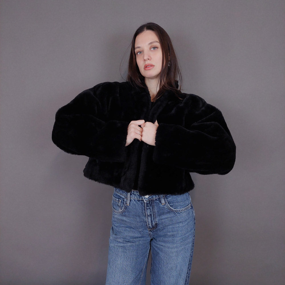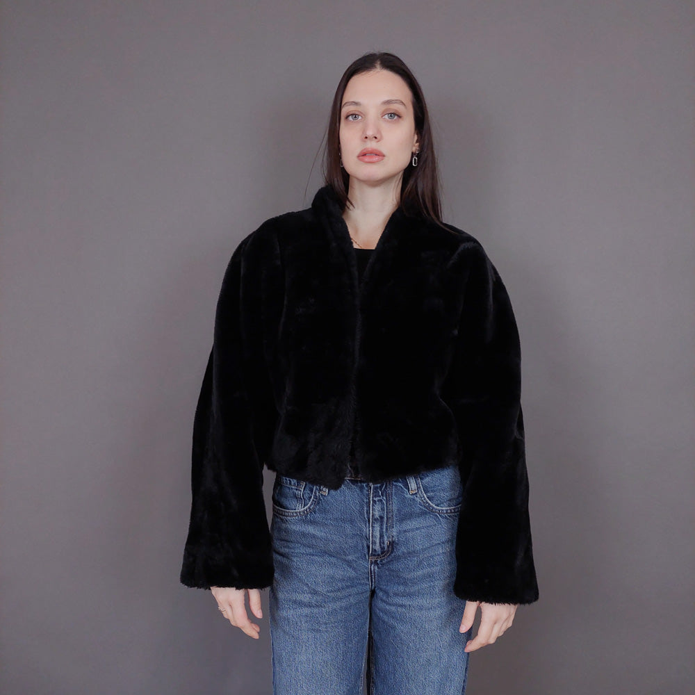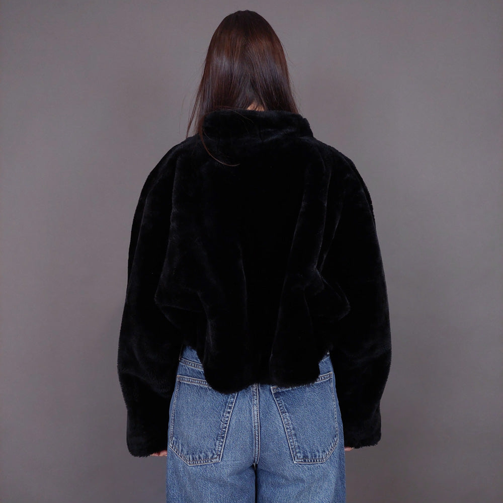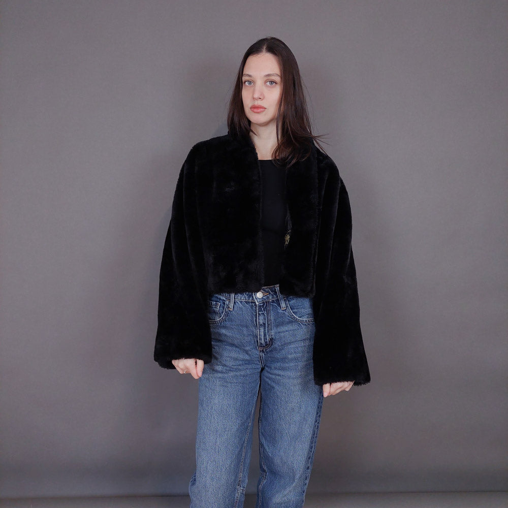 VIN-OUTW-33501 Vintage γούνα οικολογική μαύρη S