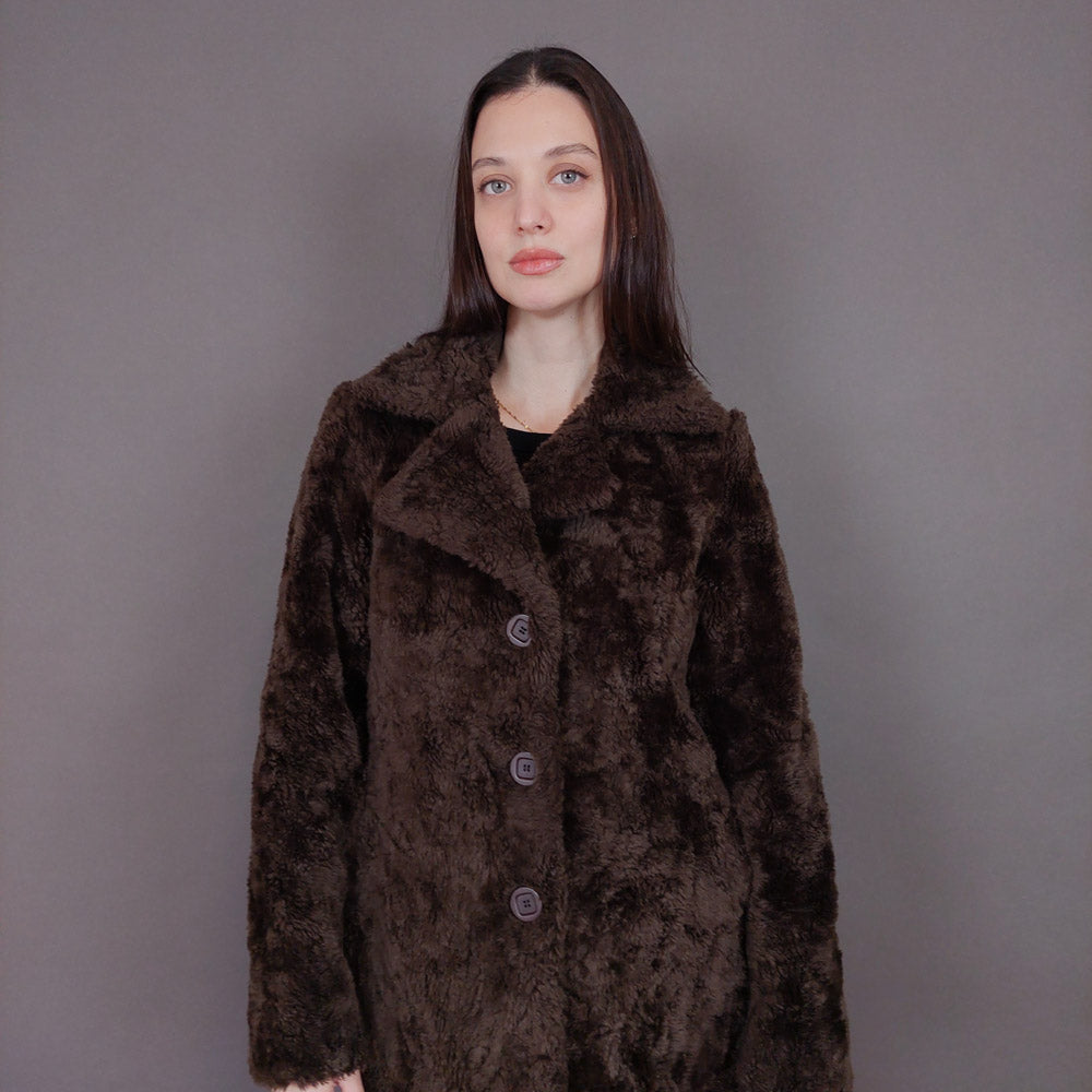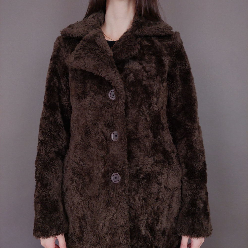 VIN-OUTW-33502 Vintage γούνα οικολογική καφέ S