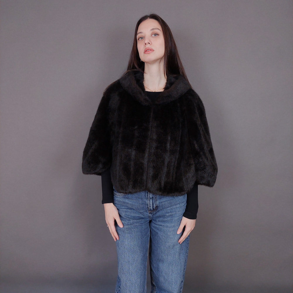VIN-OUTW-33504 Vintage κάπα γούνινη καφέ S-M