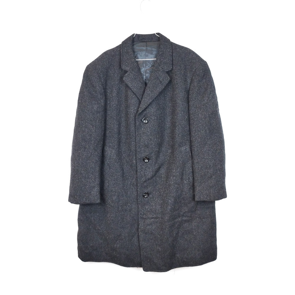 VIN-OUTW-33538 Vintage παλτό μάλλινο γκρι ψαροκόκαλο XL