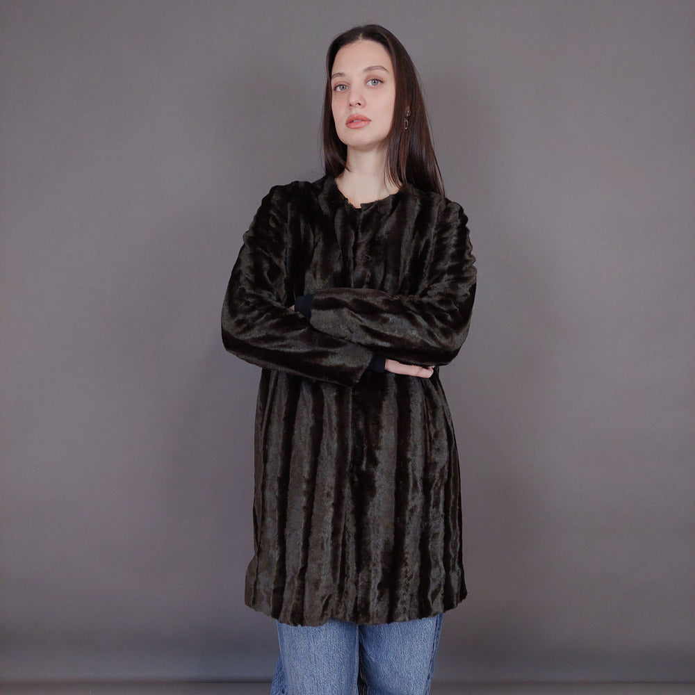 VIN-OUTW-33597 Vintage γούνα οικολογική καφέ S