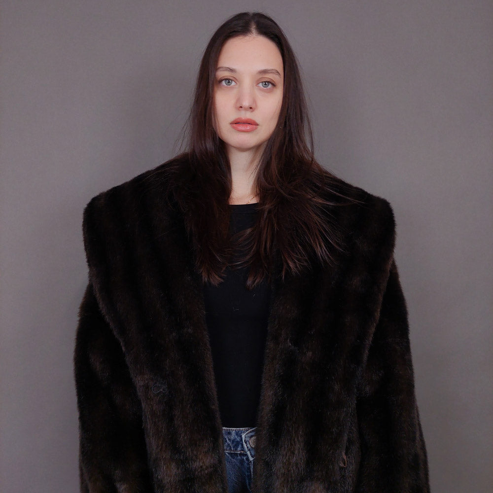 VIN-OUTW-33603 Vintage γούνα οικολογική καφέ L-XL