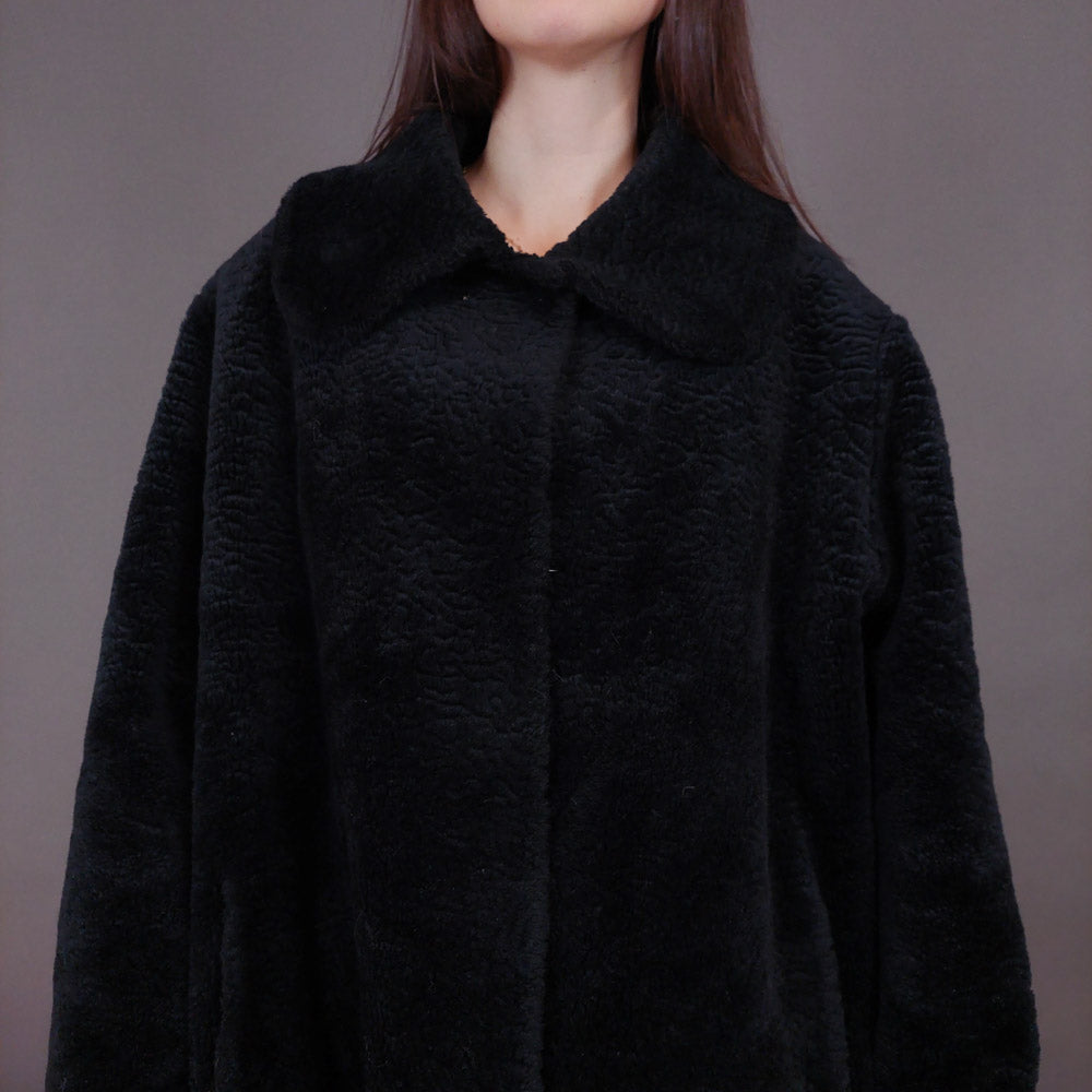 VIN-OUTW-33606 Vintage γούνα οικολογική μαύρη L