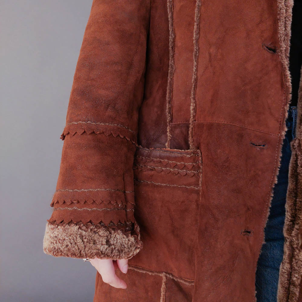 VIN-OUTW-33609 Vintage σουέντ 70's πανωφόρι με γούνα αληθινή M