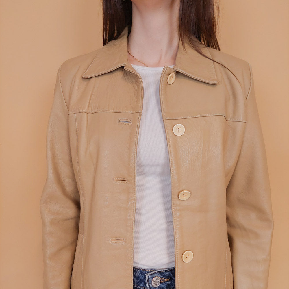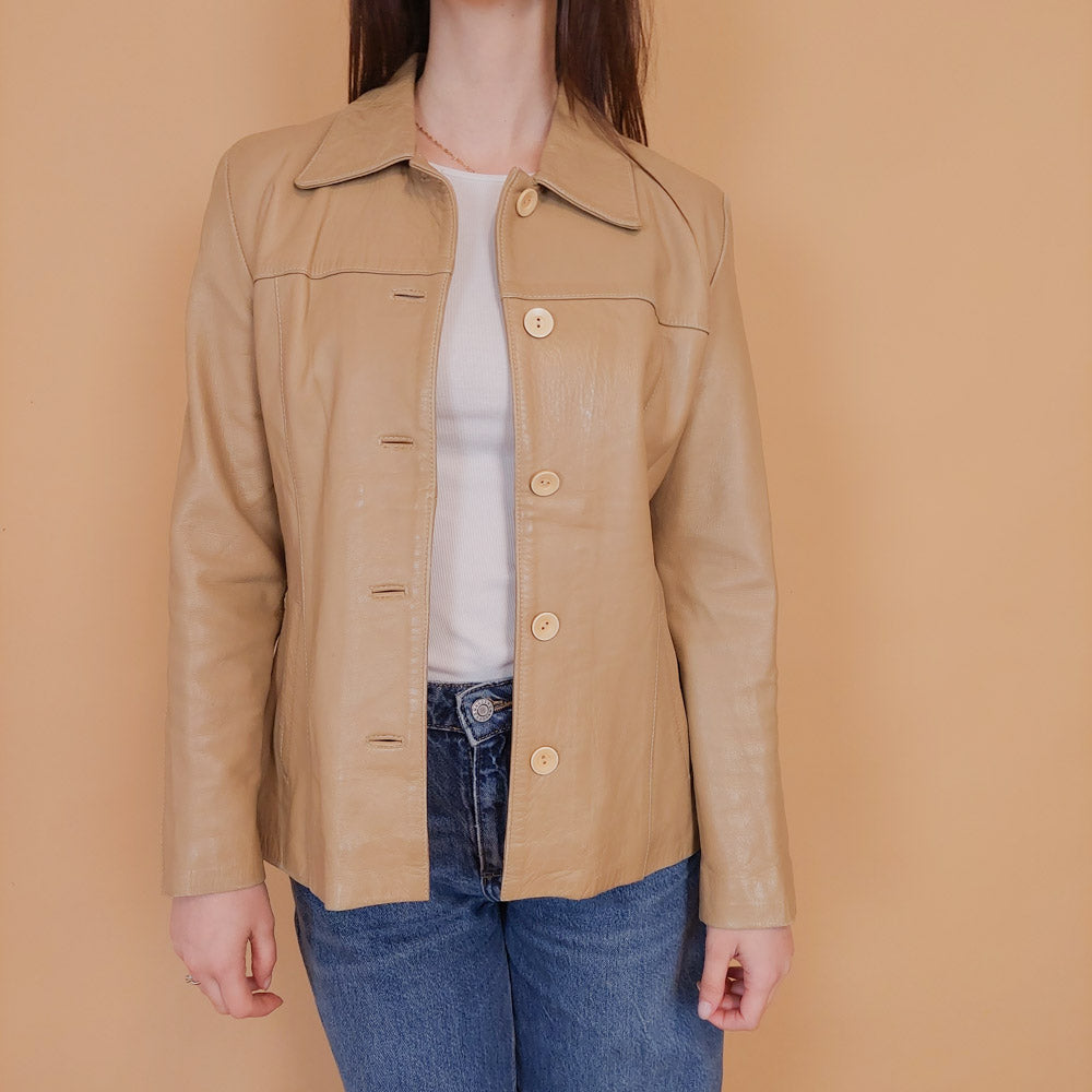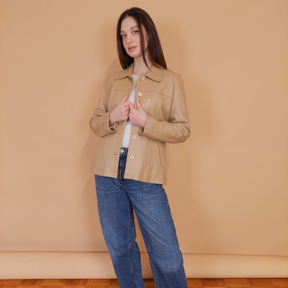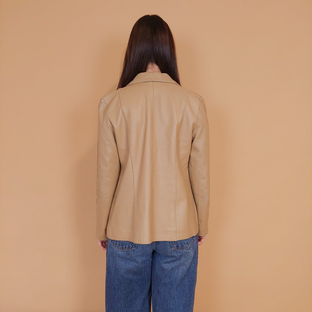 VIN-OUTW-34151 Vintage δερμάτινο σακάκι μπεζ S-M