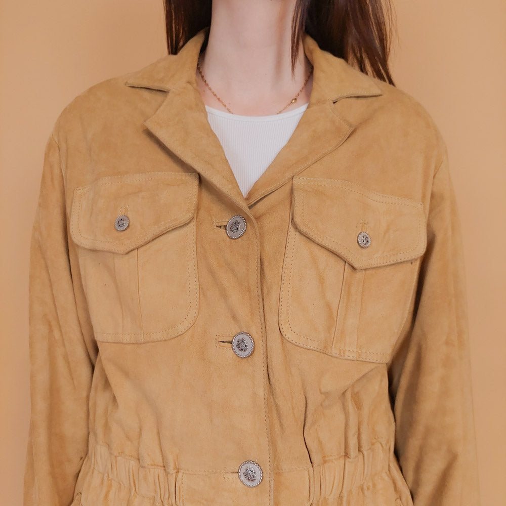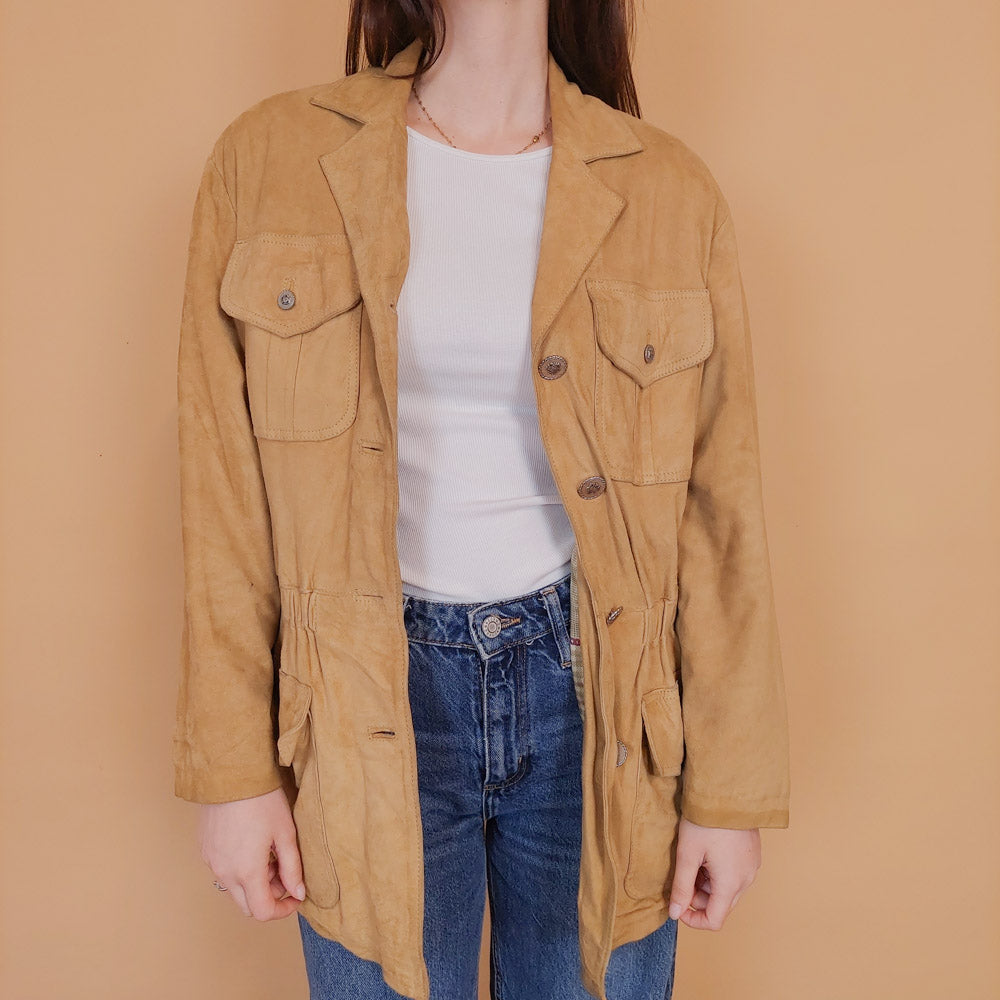 VIN-OUTW-34152 Vintage δερμάτινο suede jacket μπεζ M-L
