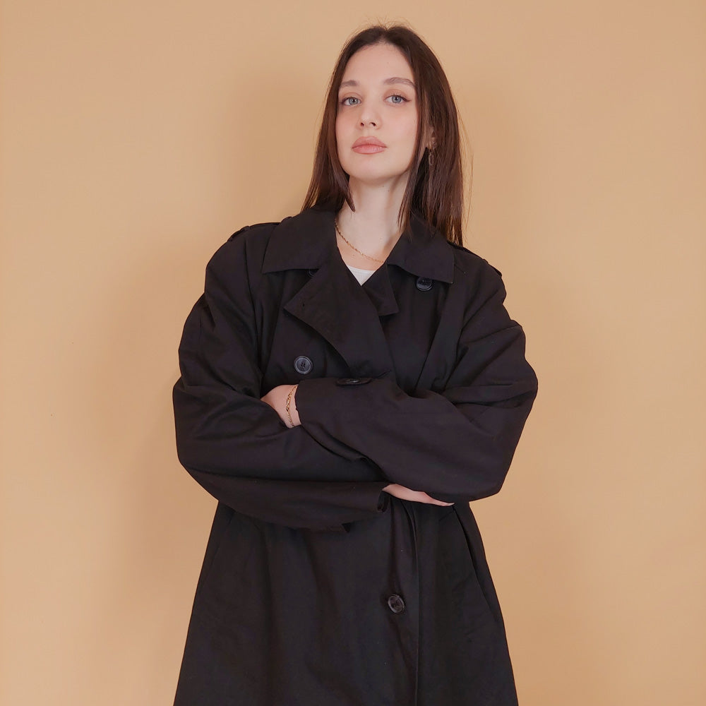 VIN-OUTW-34192 Vintage καμπαρντίνα γυναικεία μαύρη M-L