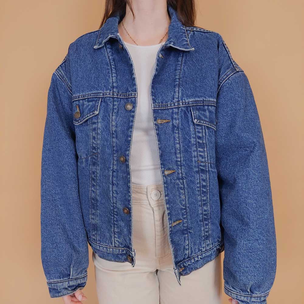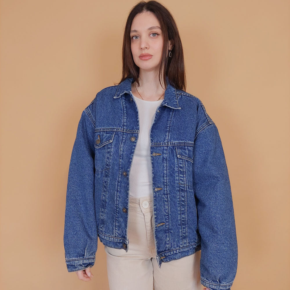 VIN-OUTW-34222 Vintage 90's style denim jacket με γούνα M