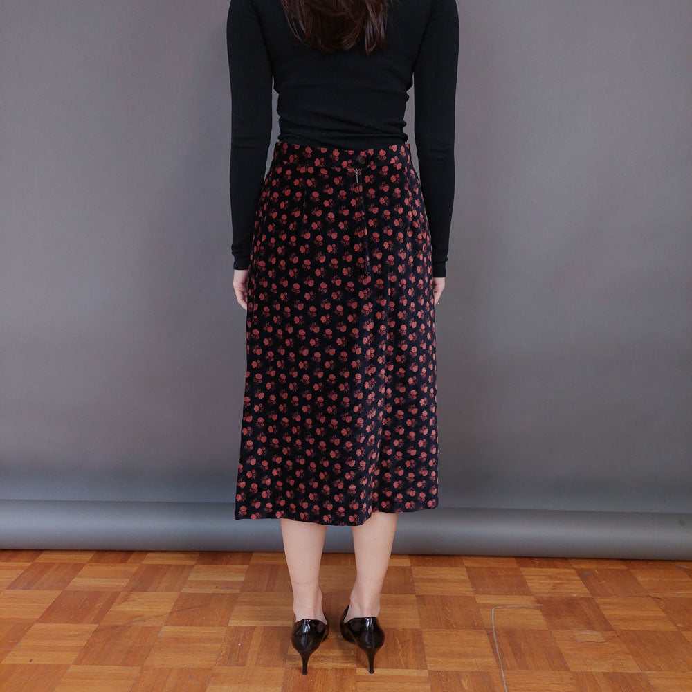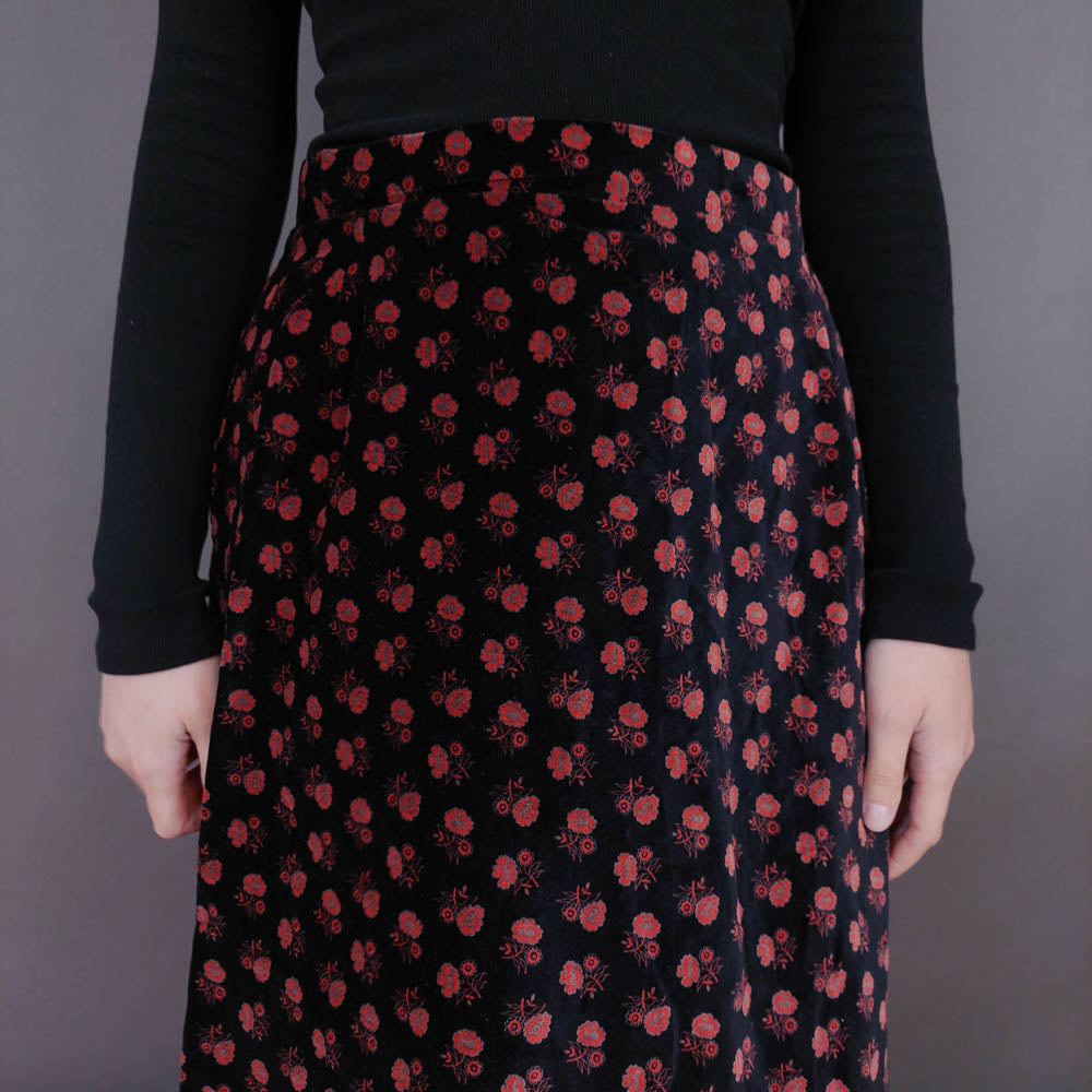 VIN-SKI-33273 Vintage βελουτέ φούστα μαύρη με λουλούδια S