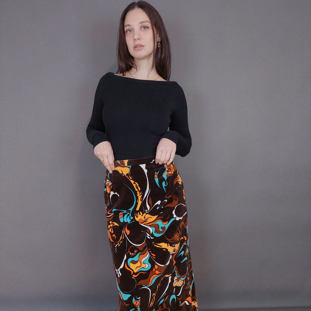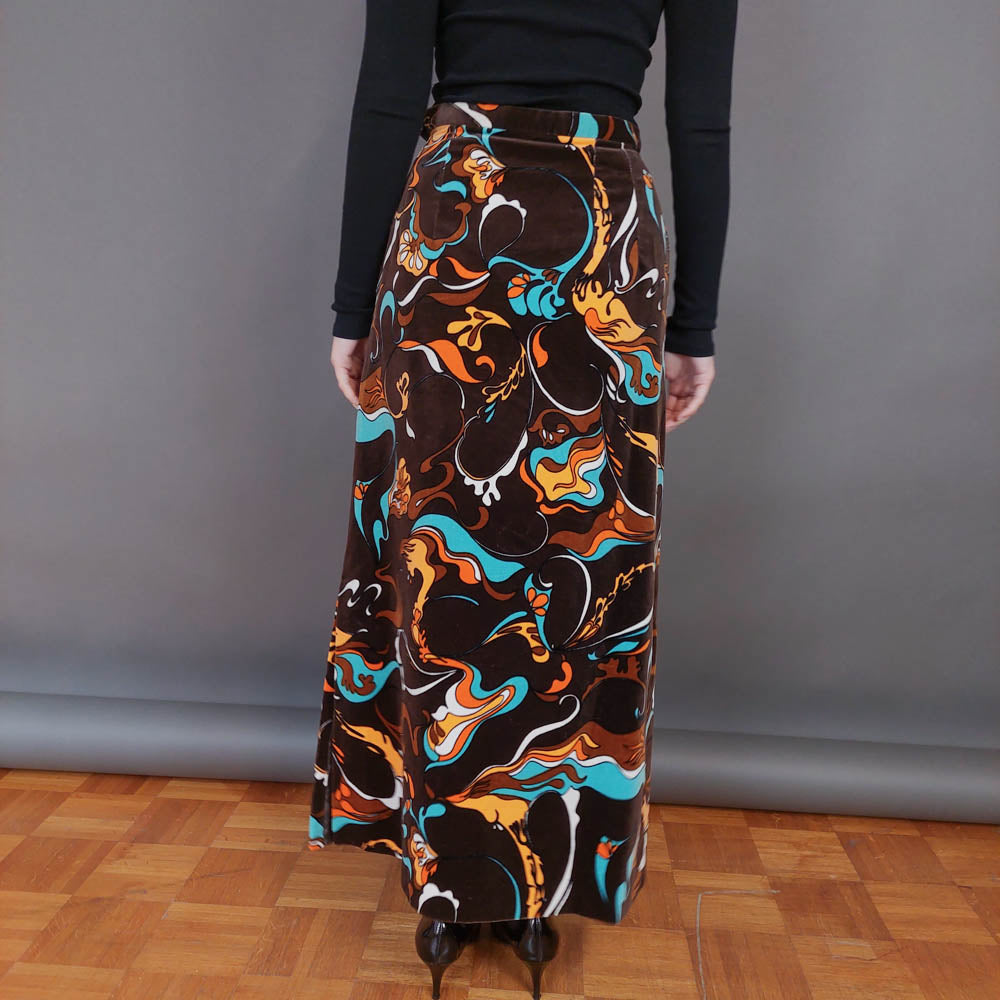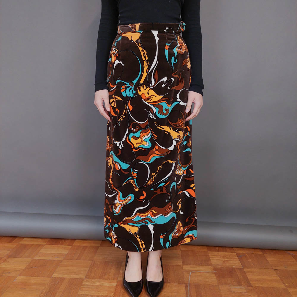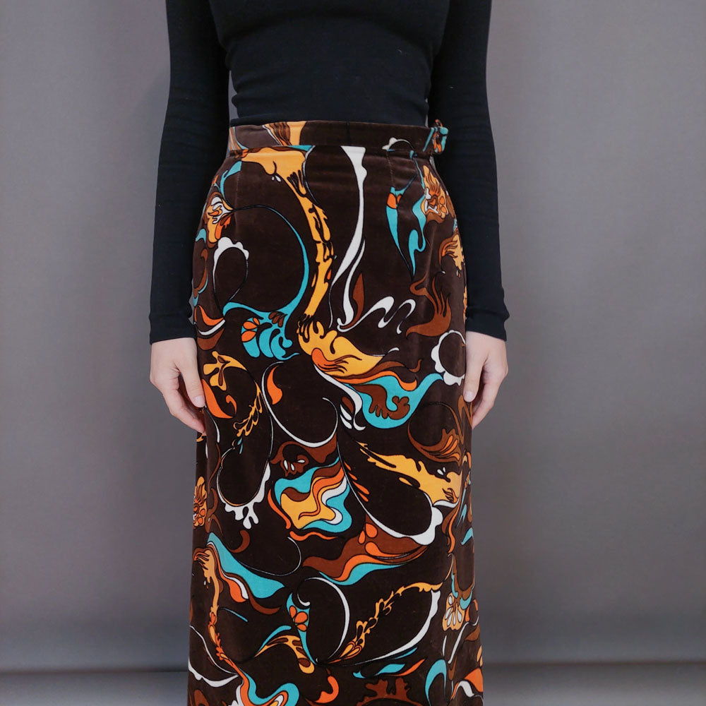 VIN-SKI-33275 Vintage βελουτέ φούστα εμπριμέ S